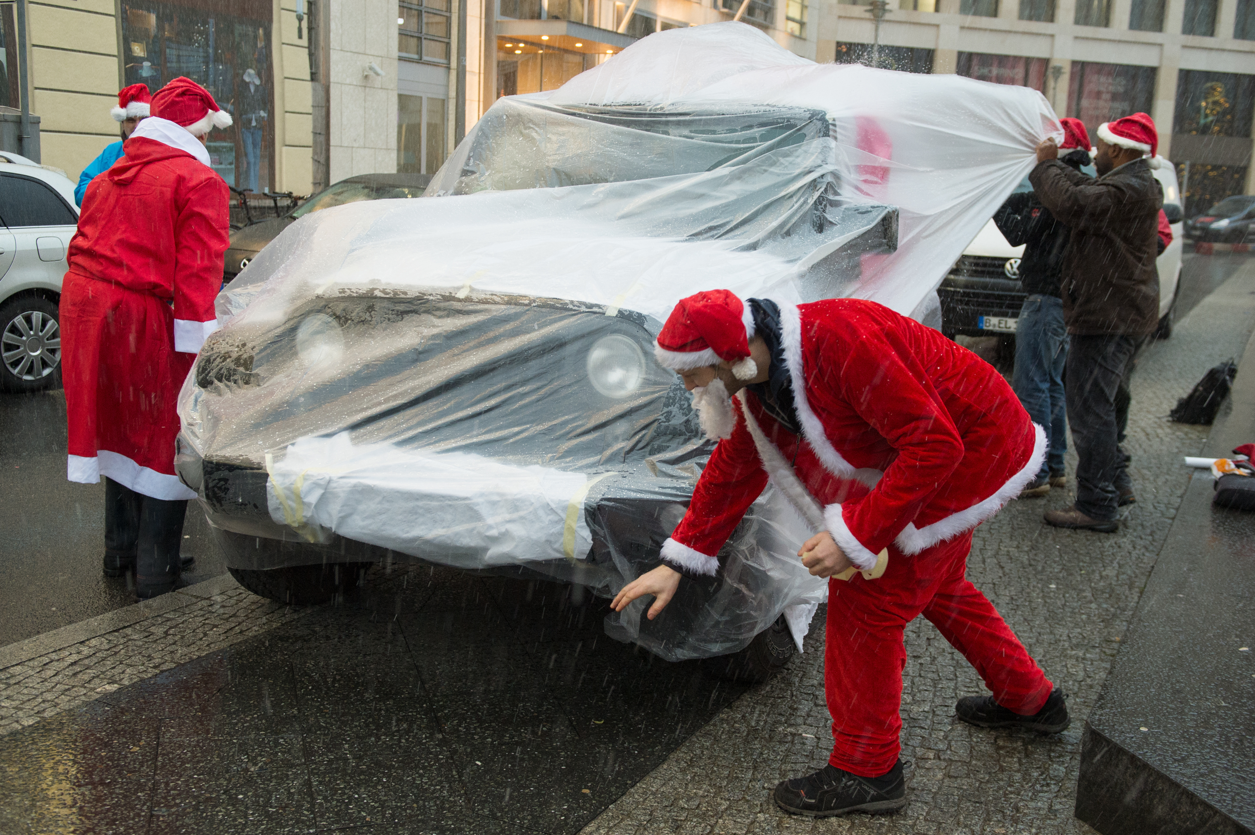 Heinrich Strößenreuther findet: Nein, muss man nicht. Der Erfinder der Wegeheld-App ist Geschäftsführer der Initiative clevere Städte, die dafür kämpft, dass Falschparken nicht mehr als Kavaliersdelikt betrachtet wird. Srtößenreuther war mal Greenpeace-Campaigner, er kennt sich aus mit spektakulären Aktionen. Schon im Dezember hat er in einer Flashmob-Aktion mit ein paar Mitstreitern, als Nikolaus verkleidet, falsch abgestellte Autos von Radstreifen getragen oder in Folie eingepackt. Am Mittwoch beim Falschparkertag wollten sich Räder zusammen ketten und, wie ein Auto, in zweiter Reihe parken.