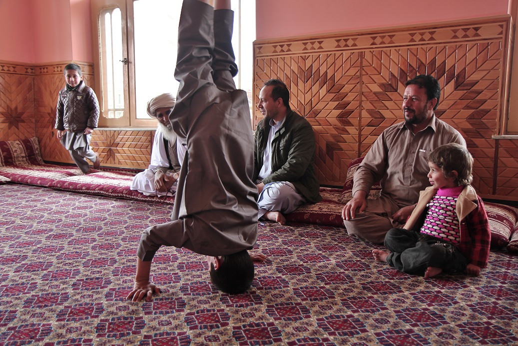 Zum Essen gab es die üblichen (riesigen) Mengen an Reis, Fleisch, Salat, Brot und Obst. Die Männer machten Witze über Kandaharis – die Bewohner einer Provinz im Süden Afghanistans, die angeblich alle schwul sind – und die Frauen scherzten über eine TV-Bericht aus England, in dem Ehemänner ihre Frauen auf den Schultern tragen mussten. „Das wäre bei mir schwierig“, sagte die Frau unseres Gastgebers, „so fett wie ich geworden bin.“ Der Großvater erzählte stolz von seinen Enkelkindern und lachte sich kaputt, als ich sagte, dass ich mit drei Geschwistern für deutsche Verhältnisse aus einer großen Familie stamme. Einer der Enkel machte Handstände und zeigte wie ein Bodybuilder seine Muskeln, der andere sang ein paar Lieder vor und zählte das Alphabet auf Englisch auf; ein dritter, vielleicht zwei Jahre alt, spielte fast den ganzen Nachmittag mit seiner Plastikpistole.