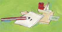 Eine besondere Vorliebe hatte der Bär für Sprichwörter. Wenn er ein Sprichwort hörte, dann schrieb er es sofort auf einen Zettel, um es nie wieder zu vergessen. Allerdings war er ziemlich langsam und ziemlich vergesslich. Sehr oft vermischte er die Sprichwörter miteinander oder vergaß die Hälfte. Auf einem der Zettel stand zum Beispiel der halbe Satz: »Was du heute kannst besorgen, …« Der Rest war dem Bären nicht mehr eingefallen, weil im entscheidenden Moment die Bleistiftspitze abgebrochen war. Deshalb konnte er sich partout keinen Reim auf dieses halbe Sprichwort machen. Manchmal stöberte er in all den Zetteln und fand ein Sprichwort, das er schon wieder vergessen hatte.
