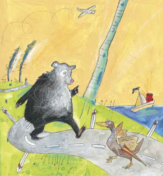 Zugegeben, ein bisschen verrückt war der Bär schon, und viele behaupteten, es läge daran, dass er ein Radio besaß. Mit dem Radio konnte er Nachrichten aus der ganzen Welt empfangen, und er hörte viele interessante Dinge. Seine Freunde waren der Meinung, dass ihm das Radio Flausen in den Kopf setzte. Jedenfalls steckte er immer voller Ideen. Es gab tausend seltsame Dinge auf der Welt, über die er nachdenken musste.