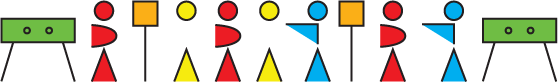 In der mathematischen Logik spielen die Operationen Negation („nicht“), Konjunktion („und“), Disjunktion („oder“), Implikation („wenn, dann“), Äquivalenz („dann und nur dann“) eine wichtige Rolle. Warum also nicht dafür einige hübsche Piktogramme einführen, entsprechend obiger Reihenfolge