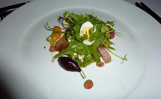 Crab meat mit Kräutern, Nüssen und Speck. Kleines Salätle, großes Kino im Restaurant August.
