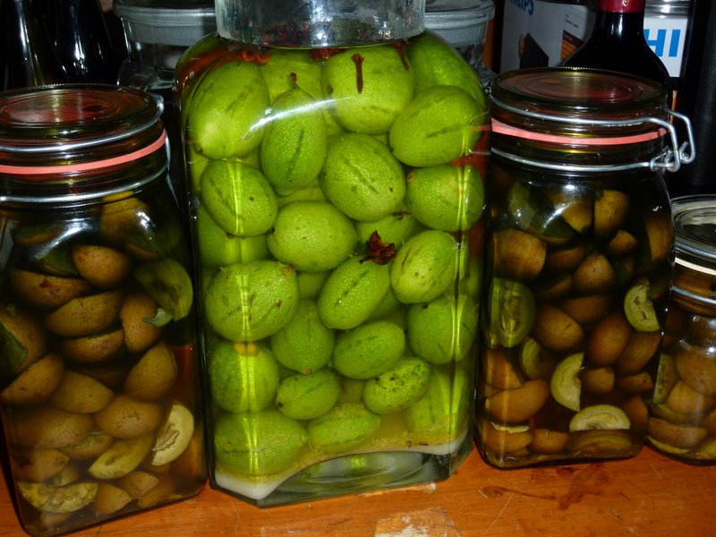 19g Pökelsalz pro Kilo Fleisch und je nach Geschmack Pfeffer, Majoran, Knoblauch, Zitronenabrieb, Mazis (Muskatblüte), Pistazien, getrocknete Trompetenpilze, Rosmarin, Thymian, Petersilie und einen Schuss Calvados dazu.