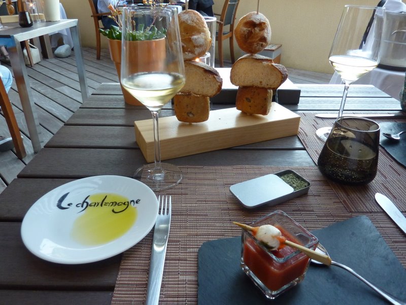 Schon das Brot, Olivenöl und Meersalz mit grünem Tee sowie das Amuse Gueule, klasse!