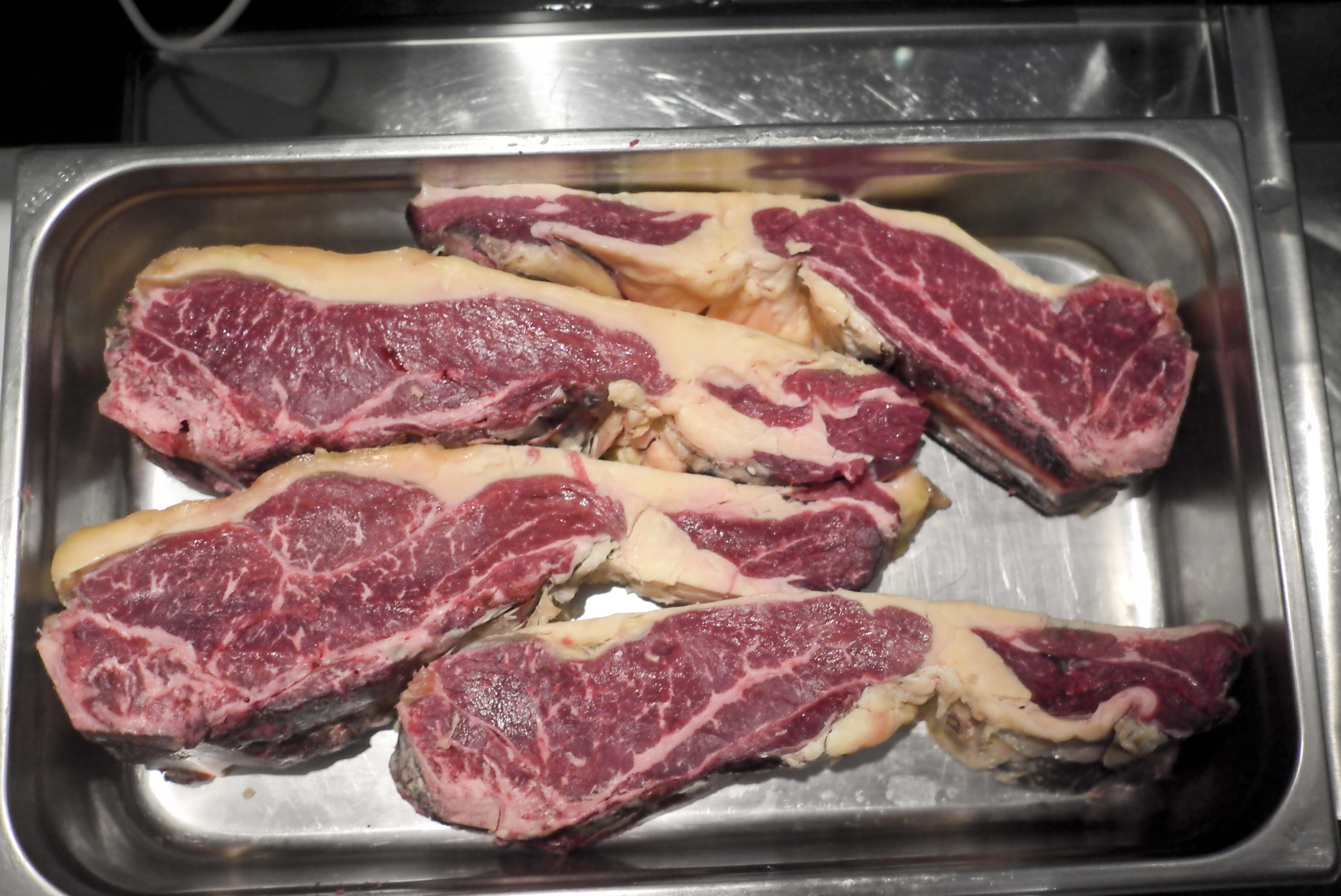 So kam also vor wenigen Tagen die Nachricht, dass es in Spanien einen Betrieb gibt, der das Fleisch von Kühen selektioniert, die zwischen 8 und 18 Jahren alt sind. Diese Kühe stammen aus den Hochlagen Galiziens und Portugals, sie haben ihr Leben lang gekalbt und abertausende Liter Milch gegeben. Es werden maximal 20 Kühe pro Woche geschlachtet, die „superextra“ Qualität ergeben. Selektioniert wird nach Alter und nach Fettgehalt, die Rasse wird nicht spezifiziert. Die Familie von Imanol betreibt dieses Geschäft seit vielen Generationen, seit hundert Jahren wird professionell ausschließlich an Gastronomie verkauft, mit den allerbesten Referenzen (Arzac und Co).