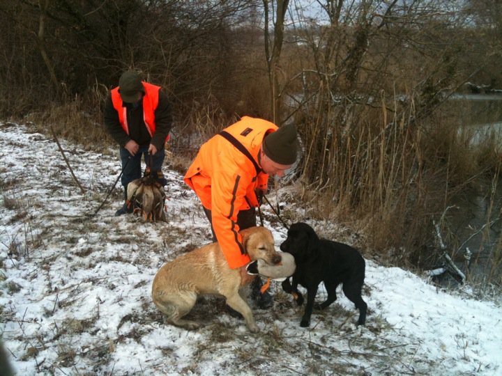 Bei der letzten Entenjagd, bei der mir der Elsäßische Labradorrüde „Bisquit“ die Enten aus dem Eiswasser apportierte (großartige Hundearbeit!), da haben mir die Rupfer (genau so gute Arbeit!), nicht nur die wunderbaren Stockenten, sondern auch die Lebern und Mägen mitgegeben.