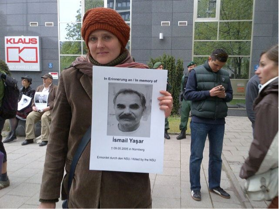 Jana aus München erinnert vor dem Gericht an das #nsu Opfer Ismail Yasar. lc yfrog.com/mmn0jiij