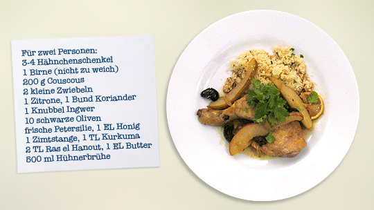 Weiter„Hähnchen-Tajine mit Birne und Couscous“