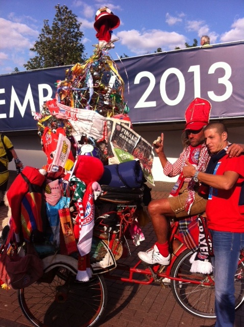 20:22 Bevor es losgeht, holen Sie sich noch schnell ein Weißbier, machen Sie es sich auf Ihrer Couch gemütlich und gestehen Sie sich ein, dass Sie nicht zu den ganz Harten gehören. Die ganz Harten heißen Kahn oder machen Sachen wie dieser Kerl auf dem Bild: Helmut Robers, der 500 Kilometer mit dem Fahrrad aus dem Münsterland bis zum Wembley-Stadion radelte. Elf Tage hat er gebraucht und ist dabei dreimal gestürzt.