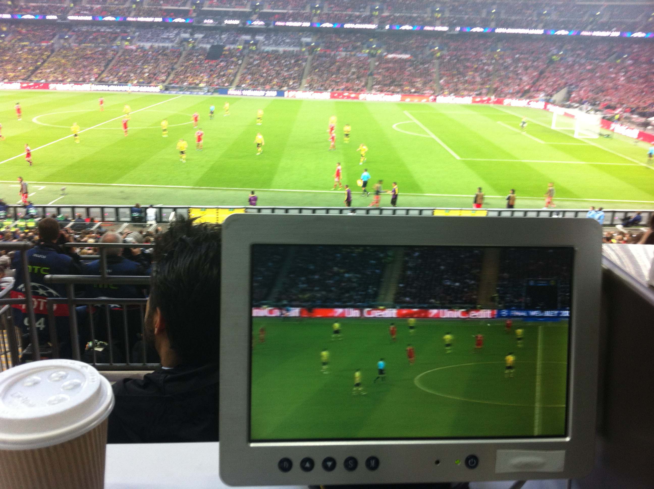 78′ Mich haut das Spiel fast vom Stuhl in der Redaktion. Aber der Kollege in London findet noch Zeit, um Freundschaften zu knüpfen. So ist Fußball. Sid heißt der Typ, der neben ihm im Stadion sitzt. Er ist Engländer, Fotograf und hasst Fußball. Ihm ist egal, wer gewinnt. Obwohl: Er war 2002 mal in Rotterdam als Dortmund da gespielt hat. Dort wurde er von BVB-Fans mit Bier beworfen und bespuckt, sagt er. Deshalb möchte er, dass Bayern gewinnt. Außerdem hat München einen Englischen Garten. So sieht es bei den beiden aus: