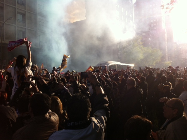 Vorhin fuhr der Madrid-Bus vor. Tausende Real-Fans wedelten mit ihren Schals und riefen: „Si,se puede!“ Wörterbuch raus, BVB-Fans! (cs)