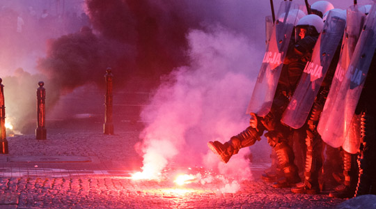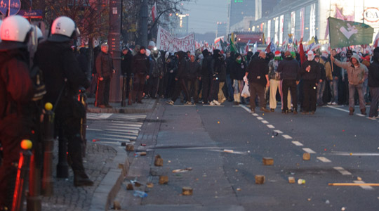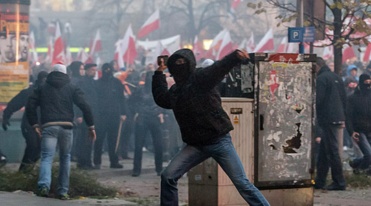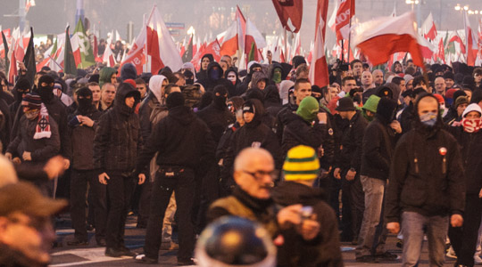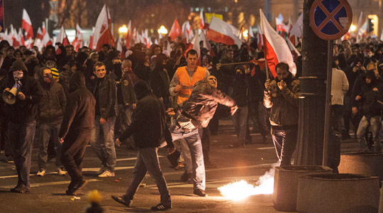 Es scheint zur traurigen Tradition am 11. November in Warschau zu werden. Neben den staatsoffiziellen Zeremonien und Gedenkfeiern im ganzen Land marschieren auch tausende Nationalisten, gewaltbereite Neonazis und Hooligans bei einem eigenen „Marsch der Unabhängigkeit“ am polnischen Nationalfeiertag durch Warschau und liefern sich dabei Straßenschlachten mit der Polizei. Ziel des Marsches ist das Denkmal von Roman Dmowskiego. Er gilt als einer der Väter des polnischen Nationalismus und organisierte 1911 als überzeugter Antisemit einen Boykott jüdischer Unternehmen.
