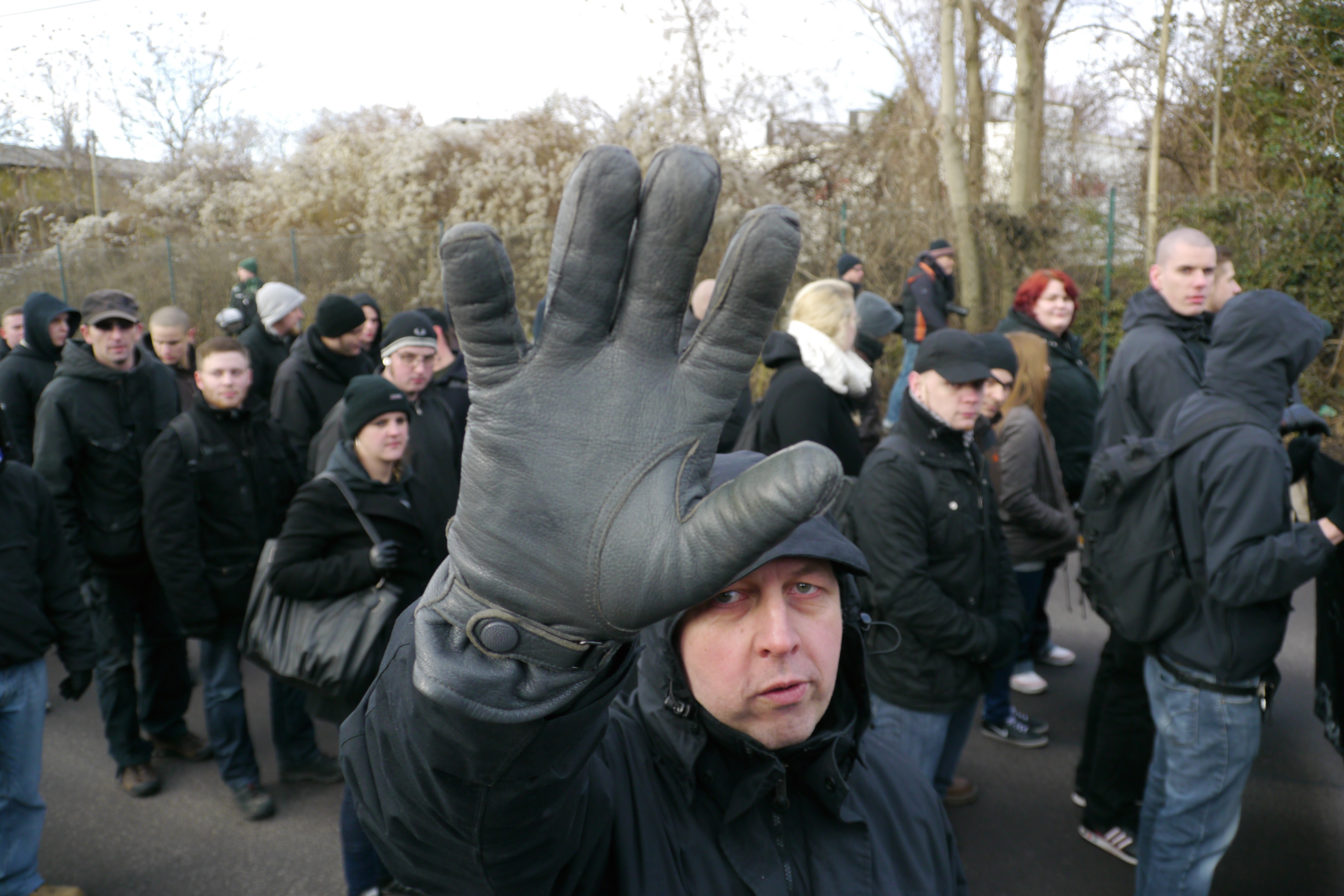 Etwa fünf Kilometer lang führt die Aufmarschstrecke an weitestgehend unbewohnten Häusern in den Stadtteilen Fermersleben und Salbke vorbei, durch die Straßen schallt Richard Wagners „Götterdämmerung“ in Dauerschleife. Zu einer weiteren Zwischenkundgebung kommt es vor dem „Libertären Zentrum“ (Liz), das in der Vergangenheit desöfteren von Neonazis angegriffen worden war. Ans Mikrofon treten Andy Knape, der kürzlich den Bundesvorsitz der „Jungen Nationaldemokraten“ (JN) übernommen hatte, und Maik Müller aus Dresden, der im Februar 2012 den fehlgeschlagenen Fackelmarsch in Dresden organisiert hatte. Von ihren Reden ist nicht viel zu verstehen, denn aus dem Liz schallt laute Musik auf die Straße, Trillerpfeifen und ohrenbetäubender Lärm von Kochtopf- und Geschirrgeklapper schaffen es fast, die Lautsprecher zu übertönen. Rund eine Stunde später nehmen die Neonazis unter einer Brücke am S-Bahnhof Südost Aufstellung für ihre Abschlusskundgebung mit Daniel Weigl, Kader des „Freien Netz Süd“ und ehemaliger Vorsitzender der NPD Oberpfalz. Als Organisator Andreas Biere schließlich mit Trommelbegleitung zur „Gedenkzeremonie“ aufruft, werden zwar die Mützen gezogen. Ergriffenheit will aber nicht aufkommen und auch die entzündeten Fackeln entfalten bei Tageslicht ihre Wirkung nicht. Knapp fünf Stunden nach dem Beginn ihrer Veranstaltung geht es für die Neonazis mit den S-Bahnen anschließend zum Hauptbahnhof und zu ihren Bussen, in Magdeburg ist zumindest dieser braune Spuk für dieses Jahr erst einmal vorbei, einen weiteren Aufmarsch in sieben Tagen haben die Neonazis abgesagt.
