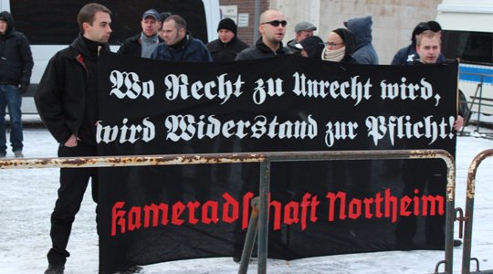 Zu ihrer Veranstaltung in Celle kam der Landwirt Joachim Nahtz, der in der Vergangenheit seinen Hof in Eschede für Brauchtumsfeste und ähnliche Veranstaltungen zur Verfügung gestellt hatte. Vor einer geplanten Kundgebung in Soltau kam es letzte Woche zu einem Brandanschlag von Unbekannten auf einen Kleinbus im niedersächsischen Schneverdingen. Das Dorf ist unter anderem wegen der sehr aktiven Kameradschaft „Snevern Jungs“ bekannt. Der blaue VW-Bus brannte fast vollständig aus. Auch noch andere Fahrzeuge sollen dabei beschädigt worden sein.