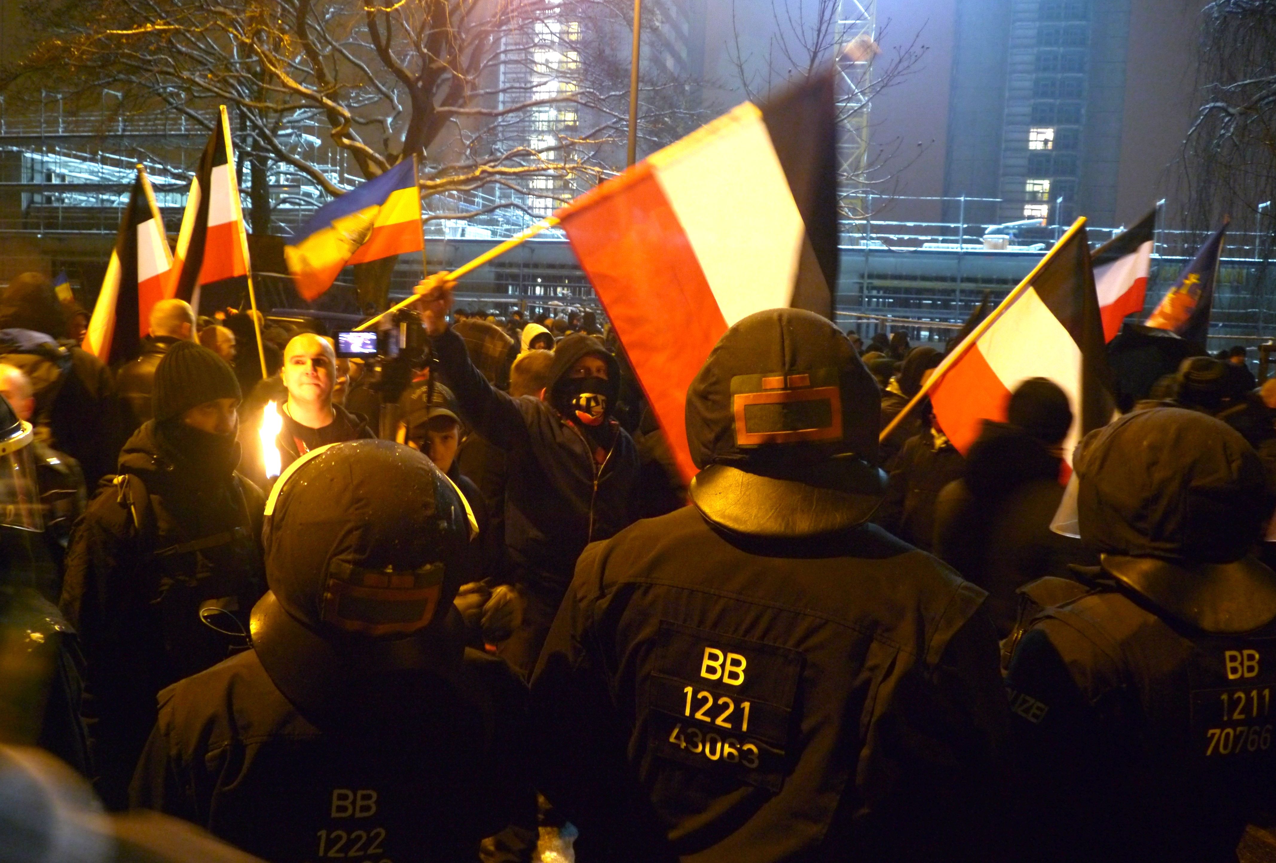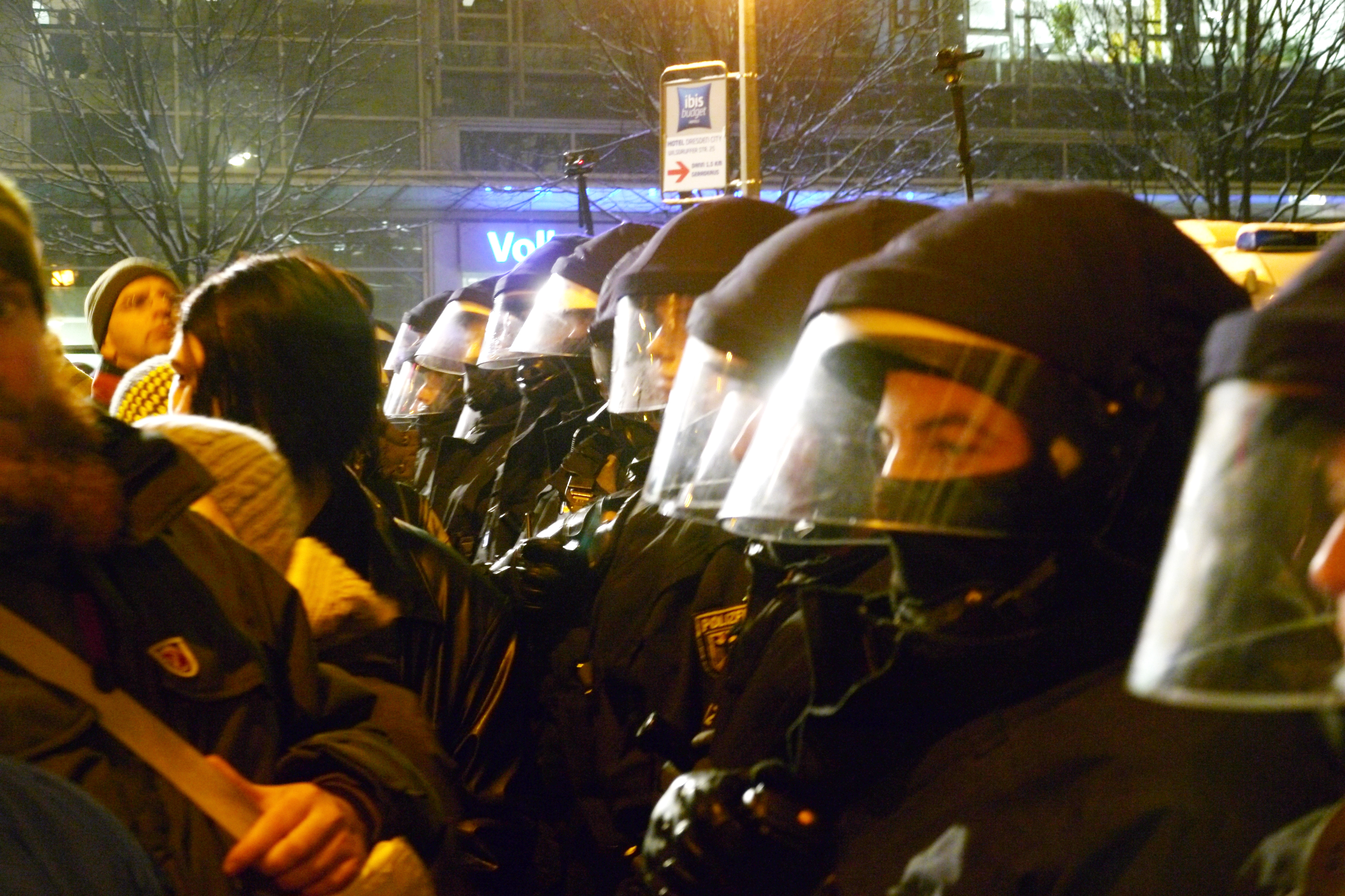 Der verhinderte Naziaufmarsch in Dresden ist für die Szene ein Desaster. Stundenlang standen die „Kameraden“ in der Kälte und konnten aufgrund der Blockaden nicht marschieren. Inzwischen ist fraglich, ob der Aufmarsch 2014 überhaupt noch stattfinden wird. Unser Autor Jesko Wrede hat den Abend in Bildern dokumentiert.