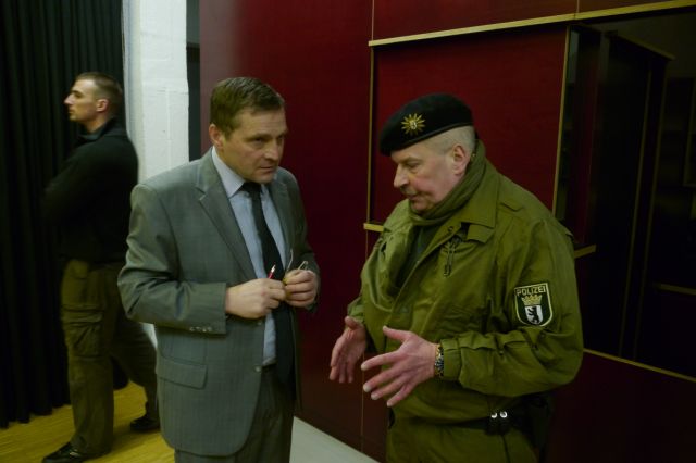 Während der Veranstaltung versuchten Schmidtke, Pastörs und der Neuköllner NPD-Funktionär Jan Sturm wiederholt, Kritik durch die Polizei unterbinden zu lassen. Die Einsatzleitung blieb jedoch gelassen und erklärte, dass Meinungsäußerungen zulässig seien und keinen Grund für einen Ausschluss darstellen. Die Art und Lautstärke allein sei keine Veranlassung, die Gegner_innen aus dem Saal entfernen zu lassen. Pastörs drohte mit einer Fortsetzungsfeststellungsklage gegen das Handeln der Polizei. Dennoch blieben die Kritiker_innen im Saal.