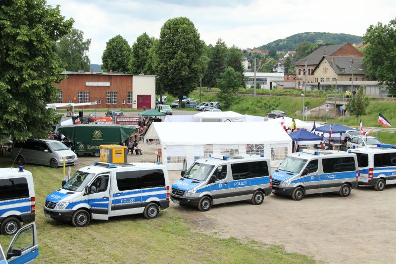 volkstreuer Menschen auf deutschem Boden“, wie es im Aufruf heißt. Jedes Jahr wird das Rechtsrock-Openair in einer anderen Stadt und Region ausgetragen. Dieses Jahr stand die extrem rechte Veranstaltung unter dem Motto der „Presselügen und der Meinungsdiktatur“ und fand in der Kleinstadt Kahla bei Jena statt. Doch wirklich viele „volkstreue Menschen“ verschlug es nicht ins Saaletal. Gerade 160 Neonazis fanden den Weg auf den staubigen Veranstaltungsplatz direkt an der Saale. Dies ist ein Tiefpunkt für die Organisatoren des Events. Waren es 2011 noch rund 900 Neonazis, so kamen bereits 2012 nur rund noch 260 zusammen. Mit den weiter einbrechenden Zahlen fällt die Veranstaltung weiter in den Bereich der Bedeutungslosigkeit und dürfte selbst von extrem rechter Seite kaum als Erfolg zu verkaufen sein.