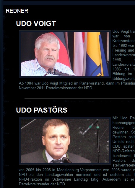 neonazistischen Veranstaltungen zu sehen. Anmelder der Veranstaltung ist ein NPD-Mitglied aus dem benachbarten Thüringischen Kyffhäuserkreis, wie die Pressestelle der Polizeidirektion Halle Süd auf Anfrage mitteilte. Die braune Feier wurde für eine Personenzahl von bis zu 1.000 angemeldet, so die Pressestelle weiter. Sollte die angemeldete Zahl auch nur annährend erreicht werden, würde Berga damit zum Auftaktort eines der größten Rechtsrock-Feste deutschlandweit. Wie andere rechtsextreme Feste ist auch die geplante Veranstaltung eine Mischung aus Rechtsrock, politischen Rednern und Kinderprogramm. Und so heißt es auf der seitens der Veranstalter, das Festival gehe „doch glatt als ganzer Familienausflug durch“. Außerdem werden zahlreiche Verkaufs- und Propagandastände angekündigt. Vor allem die NPD ist hierbei stark vertreten. Vom „Deutsche-Stimme-Verlag“ bis hin zum „Ring Nationaler Frauen“, der Frauenorganisation der NPD, werden zahlreiche weitere Stände vorhanden sein. Als Redner sind neben eher unbedeutenden Lokalpolitikern auch NPD-Funktionsträger wie Udo Pastörs oder der Altvorsitzende Udo Voigt angekündigt. Insgesamt scheint die Veranstaltung deutlich mehr den Charakter einer NPD-Werbetour zu haben, als dies bei anderen Rechtsrock-Festen der Fall ist. Nach zahlreichen Konflikten zwischen der neonazistischen „freien Szene“ und der Partei kann dies nicht verwundern.