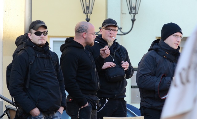 Auch von au­ßer­halb be­kom­men die Für­ther Neo­na­zis Un­ter­stüt­zung. Der Wei­ßen­bur­ger Na­zi­ka­der Mar­tin B., der FNS- Füh­rungs­ka­der Tony Gentsch (Reg­nitz­losau-​Ober­prex) und ein schein­bar aus Un­garn stam­men­der Neo­na­zi, der eine Woll­müt­ze der un­ga­ri­schen Neo­na­zi­mar­ke „War­ri­or Hun­ga­ry“ trägt und auch am FNS-​Auf­marsch zum Volkstrau­er­tag in Wun­sie­del teil­ge­nom­men hat, hel­fen den Ka­me­ra­den. Zudem ist der Dort­mun­der Chris­toph Dre­wer, der als stell­ver­tre­ten­der Kreis­ver­bands­vor­sit­zen­der der Neo­na­zi-​Par­tei „Die Rech­te“ bei den Dort­mun­der Stadt­rats­wah­len 2014 an­tritt, als Fly­er­ver­tei­ler für die Für­ther BiSF aktiv. „Die Rech­te-​Dort­mund“ gilt als Er­satz­or­ga­ni­sa­ti­on des „Na­tio­na­len Wi­der­stands Dort­mund“, wel­cher im Au­gust 2012 ver­bo­ten wurde.