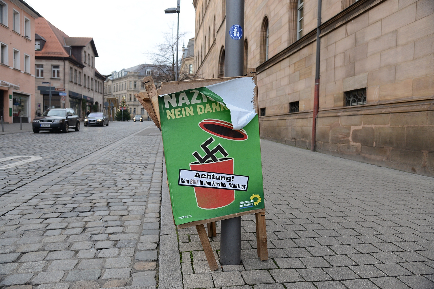 Beschädigtes antifaschistisches Anti-BiSF-Plakat in Fürth © Timo Müller