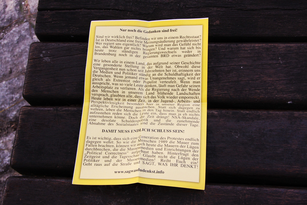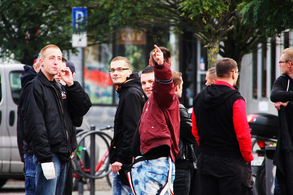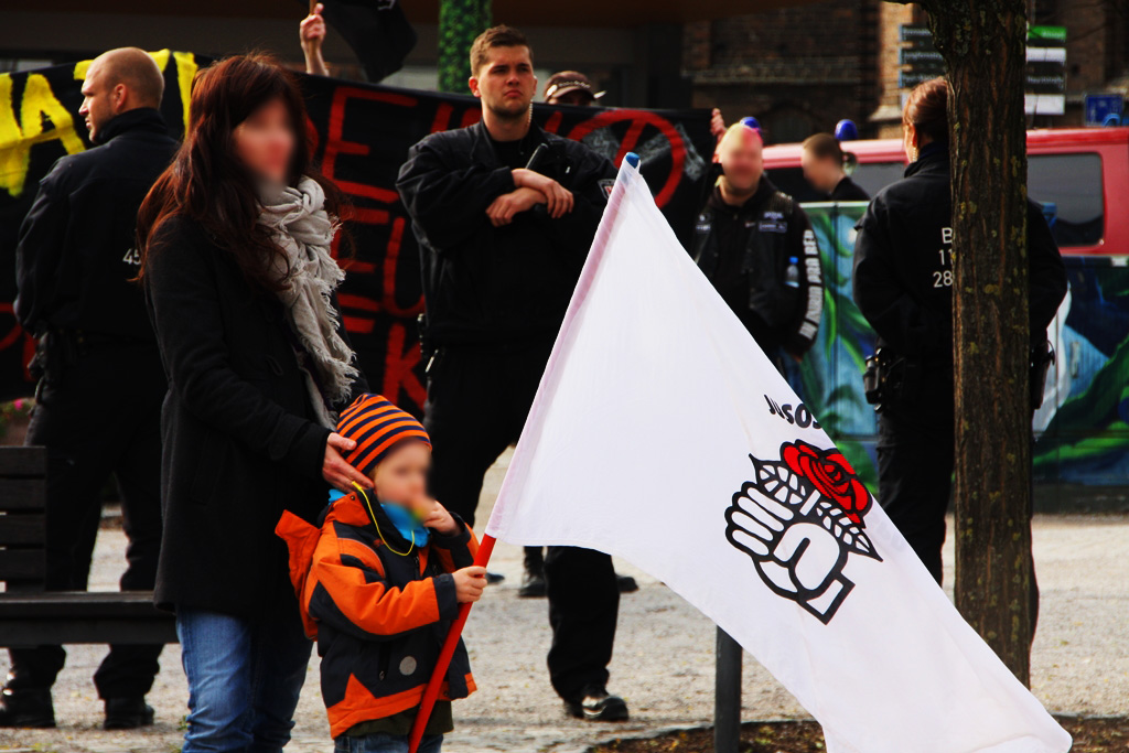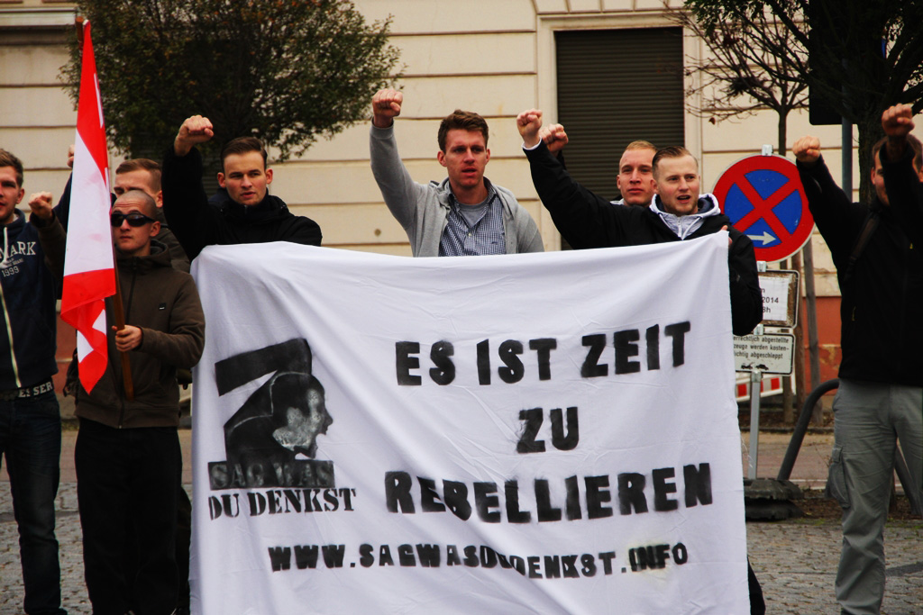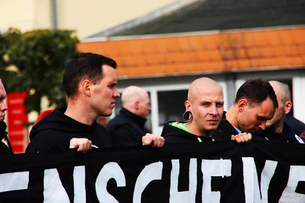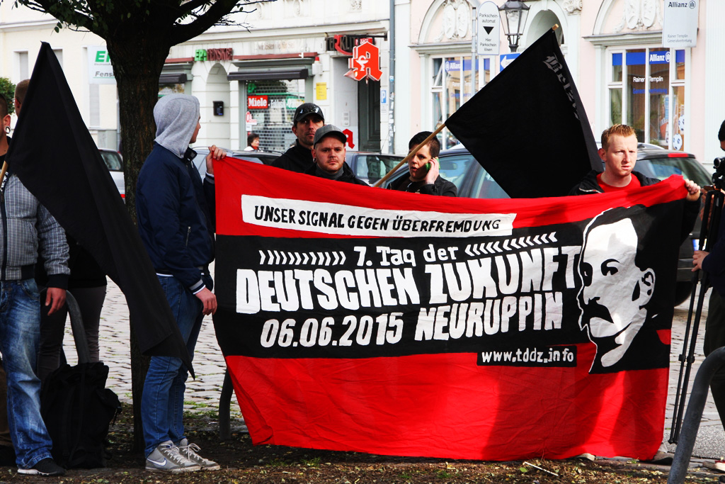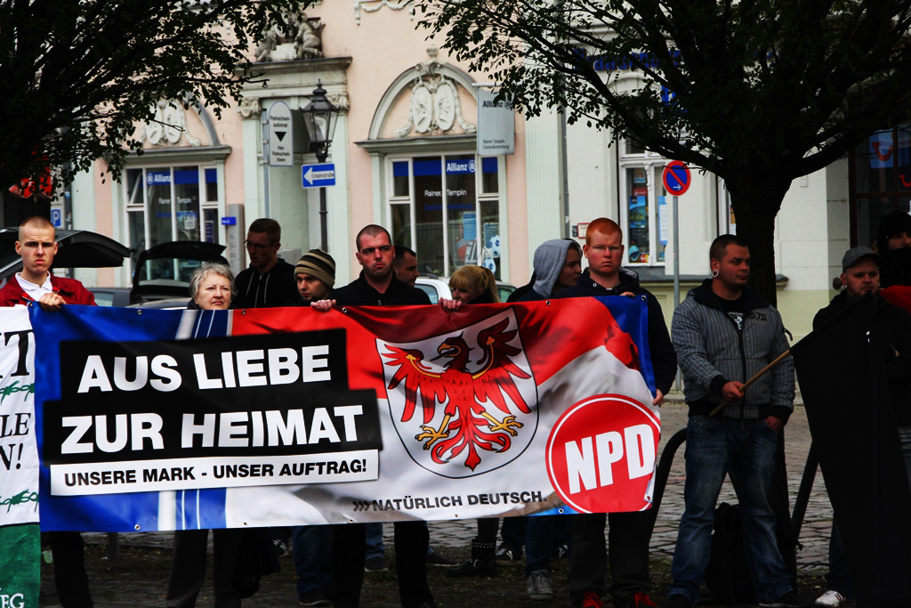 Die Verbindung zum NSU ließ sich auch am Samstag in Brandenburg nicht verbergen: Maik Eminger, Zwillingsbruder des Mitangeklagten André Eminger im Münchner Prozess, sorgte als gesetzte Szenegröße für die Anordnung der Demonstrationsteilnehmer. Er, langjähriger Vorsitzender der „Jungen Nationaldemokraten“ (JN) Potsdam, war es auch, der die erste Rede auf der Neonaziveranstaltung hielt. Nach ihm trat der Vorsitzende der Brandenburger JN, Pierre Dornbrach, ans Mikrofon, gefolgt von einem Redner der neonazistischen Partei „Der dritte Weg“, die seit Kurzem auch einen Ableger in der Uckermark hat. Der Berliner NPD-Landesvorsitzende Sebastian Schmidtke durfte bei der Kundgebung natürlich nicht fehlen, auch er hielt einen Redebeitrag.