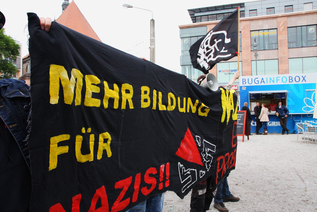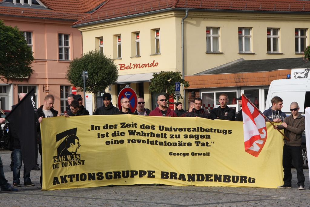 Angemeldet wurde die Kundgebung von der NPD Havel-Nuthe – vermutlich um den Behörden keine Namen der Hintermänner der GH in die Hände zu legen – erst am Montag. Ganz ohne Gegenprotest konnten die Neonazis ihre Solidaritätskundgebung trotz der kurzfristigen Anmeldung dann aber doch nicht abhalten: Ungefähr 100 Menschen, unter ihnen auch Brandenburgs Bürgermeisterin, Dietlind Tiemann (CDU), stellten sich den Rechtsextremen entgegen. Zu Gegenaktionen aufgerufen hatten die „Koordinierungsgruppe für Demokratie und Toleranz“ sowie die Linksjugend solid.