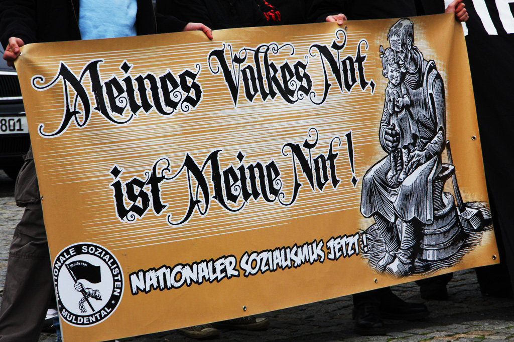 Nach anderthalb Stunden, um 15.30 Uhr, beendete dann Maik Eminger die Versammlung. Und obwohl Pierre Dornbrach während seiner Rede vehement versuchte, die „Schubladen links und rechts“ zu dekonstruieren, ließ es sich Maik Eminger nicht nehmen, gemeinsam mit den Teilnehmern den „Nationalen Sozialismus“ einzufordern. Das mit dem „Unpolitisch“-Geben hat dann doch nicht so ganz funktioniert.