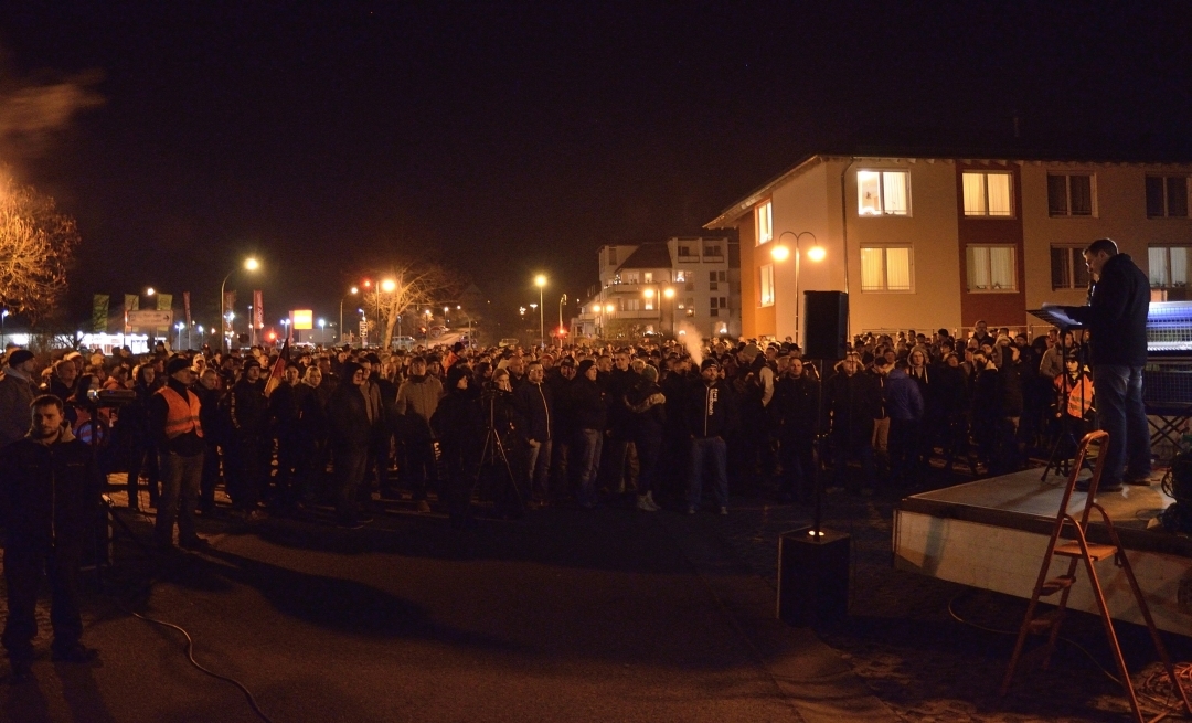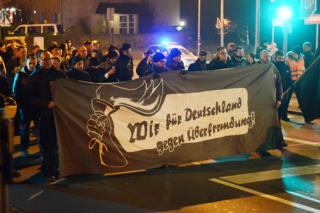 Etwa 750 Personen zogen am Samstag, dem 29. November, durch die erzgebirgische Stadt Schneeberg, um gegen die Unterbringung von Flüchtlingen in ihrer Stadt zu demonstrieren. Ein beträchtlicher Teil der Demonstrant_innen kam dabei aus dem Umfeld von NPD und regionalen Kameradschaften. In Schneeberg befindet sich in einer ehemaligen Kaserne eine Außenstelle der Chemnitzer Erstaufnahmeeinrichtung für Asylsuchende.