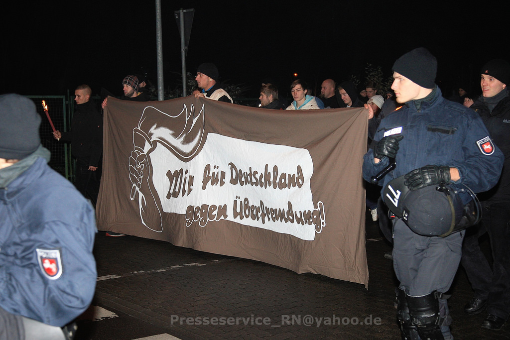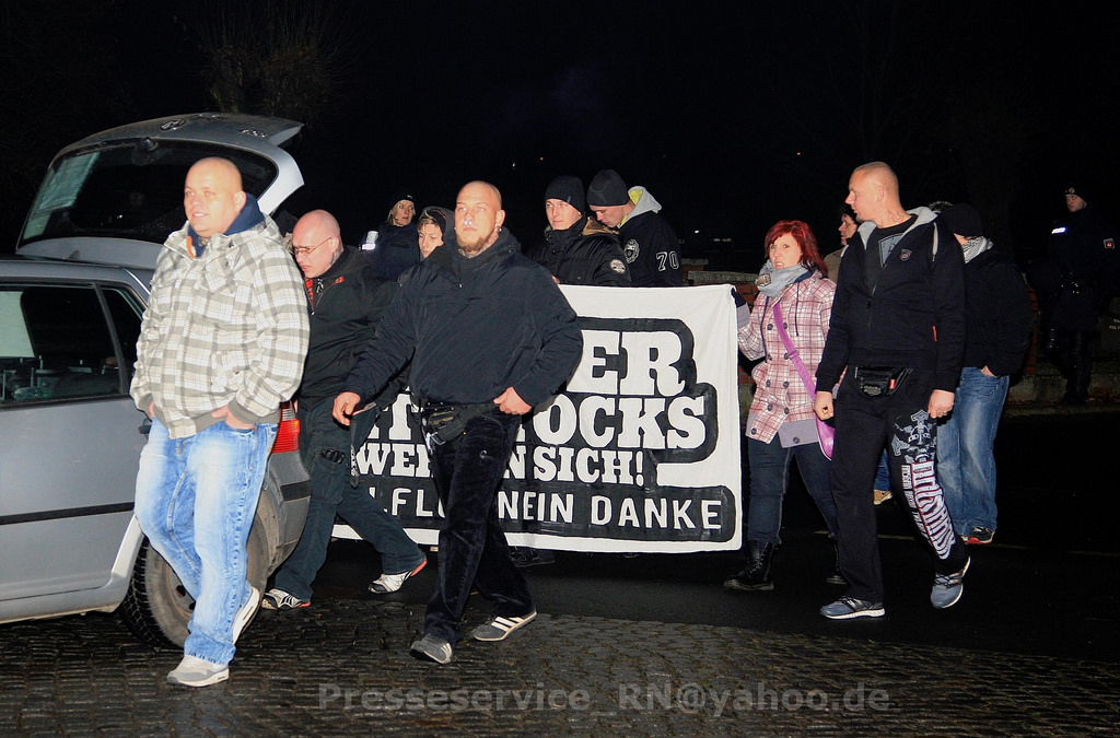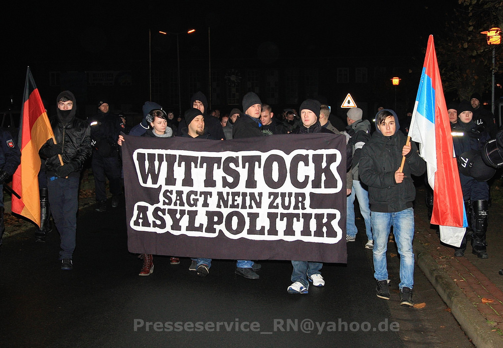 Am frühen Samstagabend marschierten ungefähr 130 extrem Rechte, der Großteil davon Neonazis aus Brandenburg und Berlin, anlässlich eines so genannten „Fackelspaziergangs gegen die Flüchtlingspolitik“ durch die nordbrandenburgische Stadt Wittstock/Dosse. Der Aufmarsch wurde von einem massiven Polizeiaufgebot von rund 400 Beamt_innen begleitet und letztendlich auch durchgesetzt. Ein Blockadeversuch von jugendlichen Antifaschist_innen scheiterte. Insgesamt nahmen an zwei Kundgebungen direkt an der Aufmarschstrecke rund 100 Gegendemonstrant_innen teil.