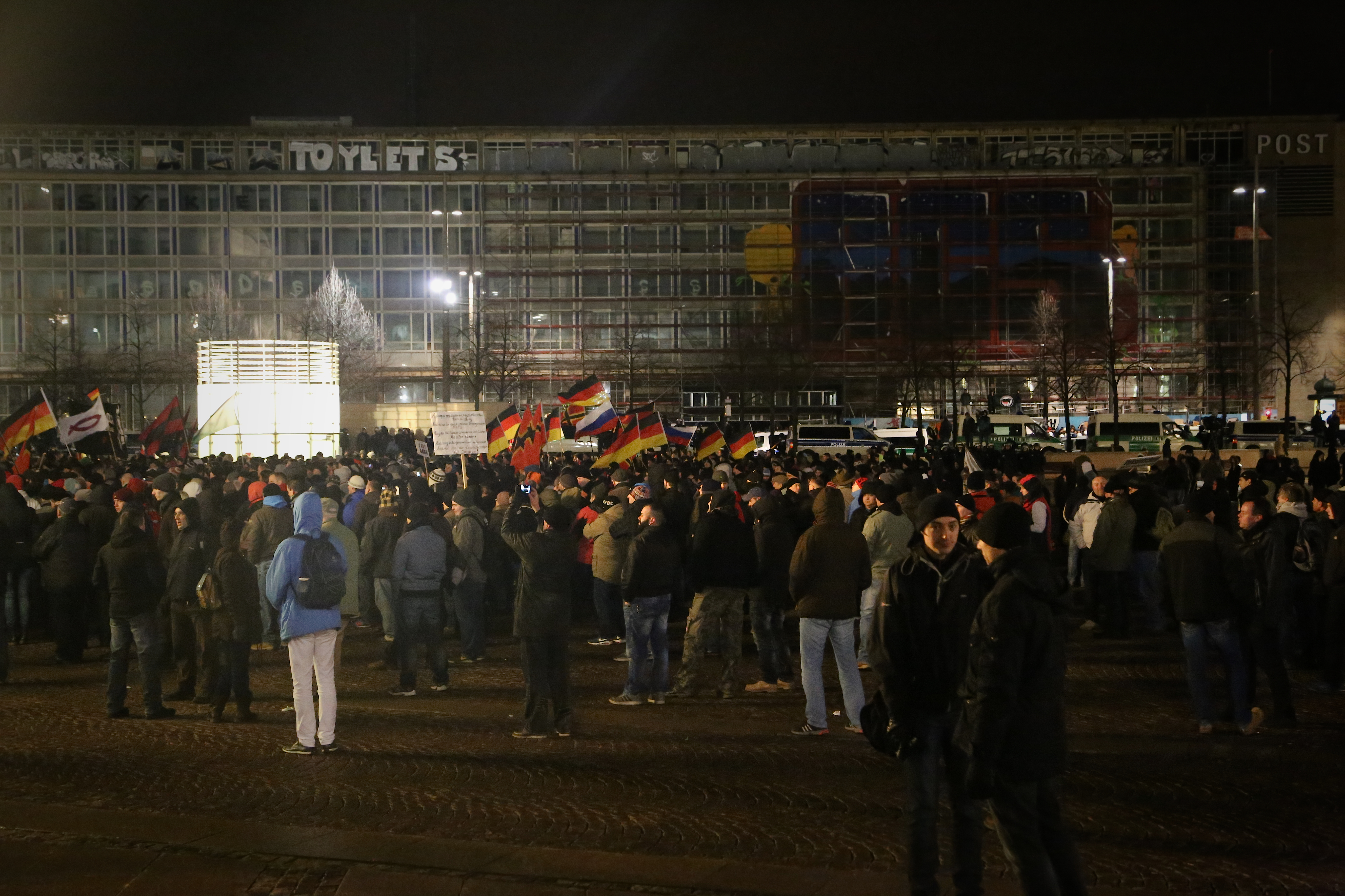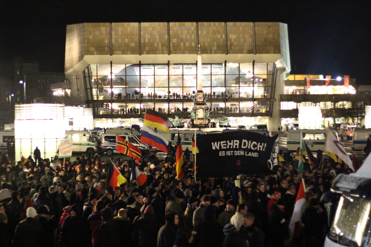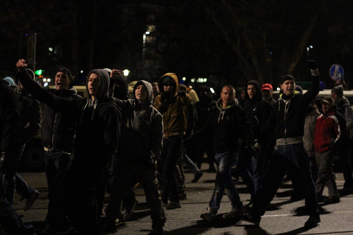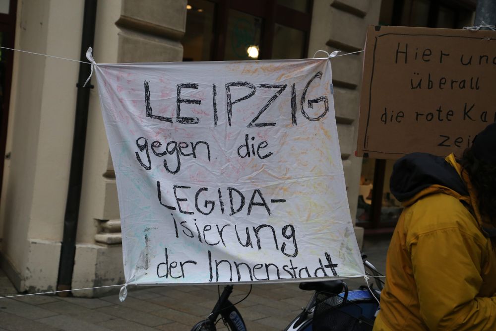 Es war das dritte Mal, dass sich die Anhänger von Legida in Leipzig trafen, um gegen die angebliche „Islamisierung des Abendlandes“ zu protestieren, doch auch Legida scheint auf dem absteigenden Ast. Das Ordnungsamt verbot im Vorhinein aufgrund von Sicherheitsbedenken einen Demonstrationszug sowie den erwünschten Kundgebungsort am Markt. Daher hielt Legida ihre Kundgebung am Augustusplatz ab. Nur etwa 1700 Sympathisanten fanden sich dort zusammen, um Reden von Götz Kubitschek oder Friedrich Fröbel zu lauschen. Dieser dankte den zahlreich angereisten Hooligans, die die Kundgebung schützten. Doch nicht nur Hooligans, wie zum Beispiel Anhänger von Lok Leipzig, sondern auch hohe Prominenz der Neonaziszene reiste an. Neben dem extrem rechten Funktionär Alexander Kurth fand sich auch der bekannte Neonazi Dieter Riefling aus Niedersachsen am Freitagabend auf dem Augustusplatz ein. Ergänzt wurde diese rechte Prominenz durch autonome Nationalisten oder der neurechten Bewegung „die Identitären.“ Sebastian Striegel von den Grünen spricht von einem „Naziaufmarsch 2.0.“ Gab es bei den vergangenen Demonstrationen mehrfach Angriffe von Legida-Teilnehmern auf Journalisten und Gegendemonstranten, blieb es bei dieser Kundgebung bei Beschimpfungen und Schubsen. Konfrontationen waren kaum möglich, vor allem aufgrund der massiven Polizeipräsenz.