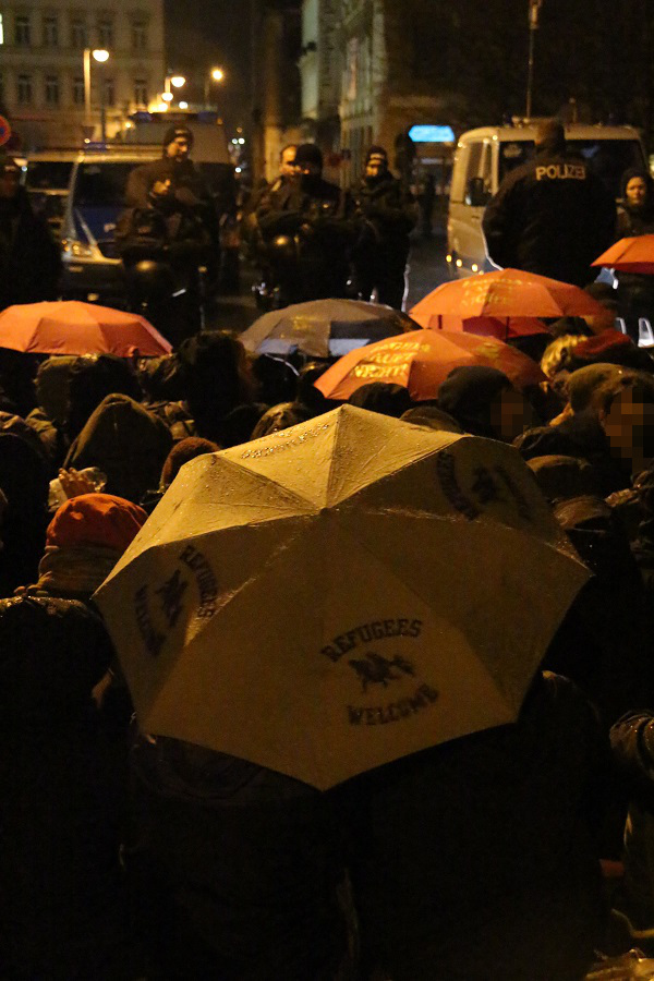 In den letzten Wochen versammelten sich regelmäßig bekannte NPD-Kader bei den Aufmärschen in Leipzig, wie beispielsweise Enrico Böhm, Safet Babic, Rolf Dietrich und Christian Bärthel oder weitere Nazis wie Alexander Kurth (Die Rechte) und Dieter Riefling. An diesem Montag waren ebenso Anhänger der „Brigade Halle“ vor Ort. Mindestens einmal wurde auch an diesem Abend der Hitlergruß gezeigt. Des Weiteren hat die Beleidigung der politischen Gegner mittels von Nazidemos bekannten Sprechchören, wie etwa „Hasta la vista, antifascista“ und „Antifa Hurensöhne“, in ihrer Häufigkeit längst die anfänglich dominierenden „Wir sind das Volk“-Rufe abgelöst.