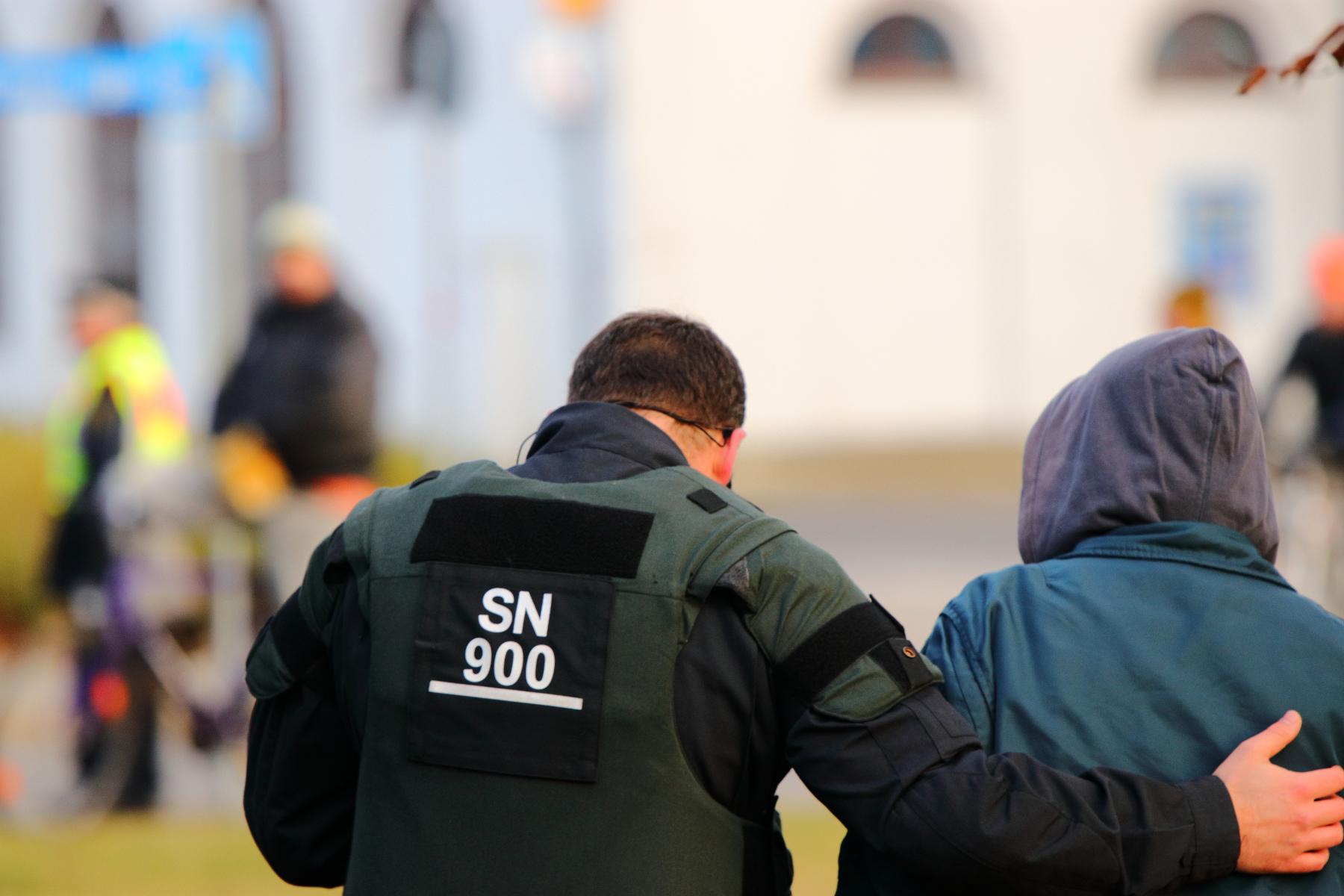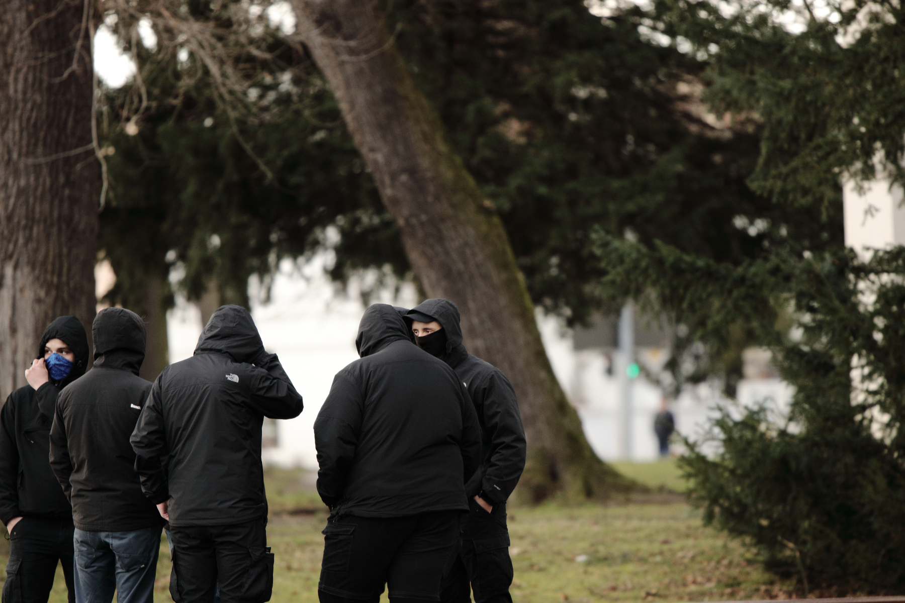 Samstagmittag waren schon Neonazis unterwegs in Wurzen, patrouillierten durch die Stadt. Zwar wurde die fünfzehn Personen starke Gruppe frühzeitig von Polizisten angehalten, doch kontrolliert wurde sie scheinbar nicht. Nur kurze Zeit später tauchten die 16- bis 25-Jährigen bei der linken Kundgebung im Stadtpark auf, vermummten sich mit Sturmhauben und Tüchern. Nur wenige Polizisten stellten sich vor die Rechtsextremen. Nach einer halben Stunde begleiteten sie die Vermummten bis zu einem Supermarkt am Ende des Parks. Wenig später meldeten die Rechtsextremen eine eigene Kundgebung an.