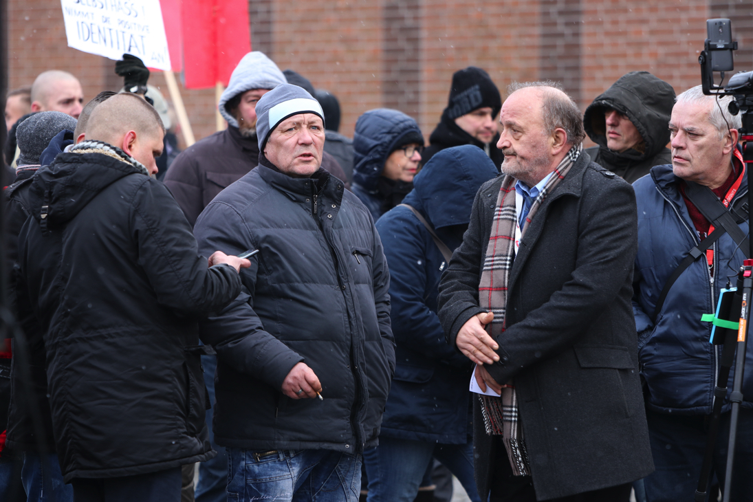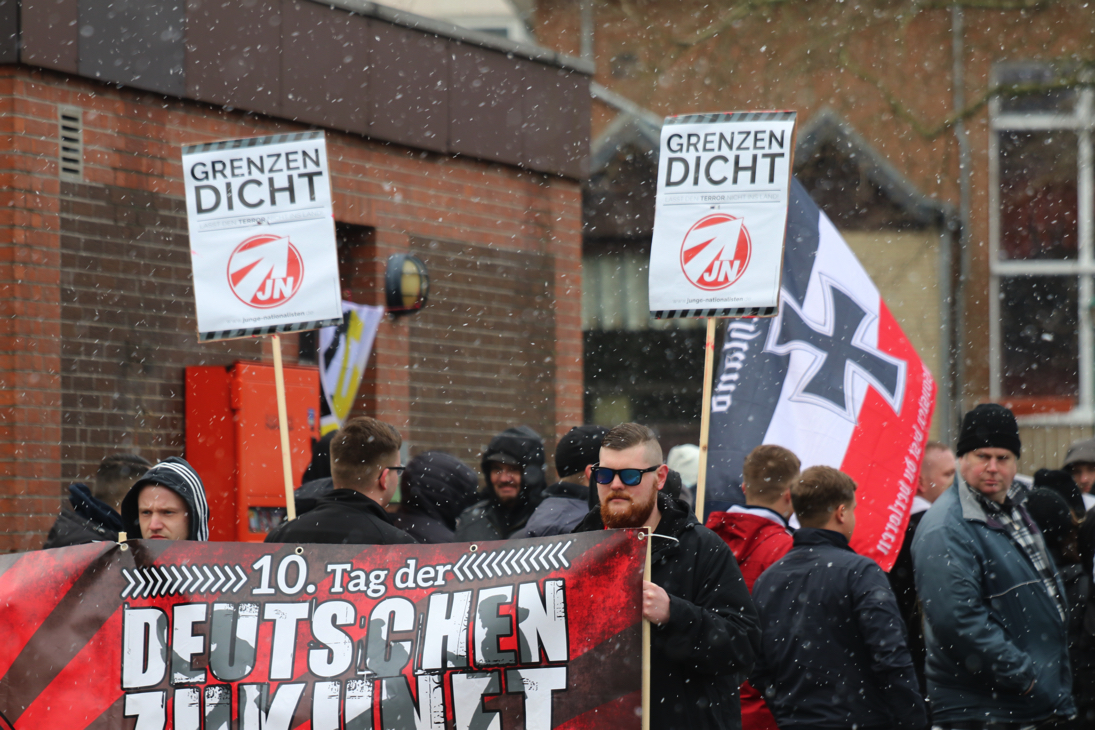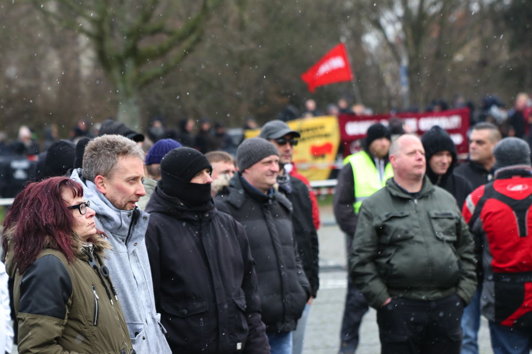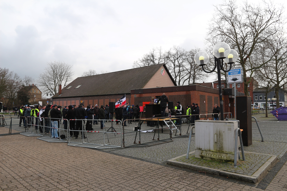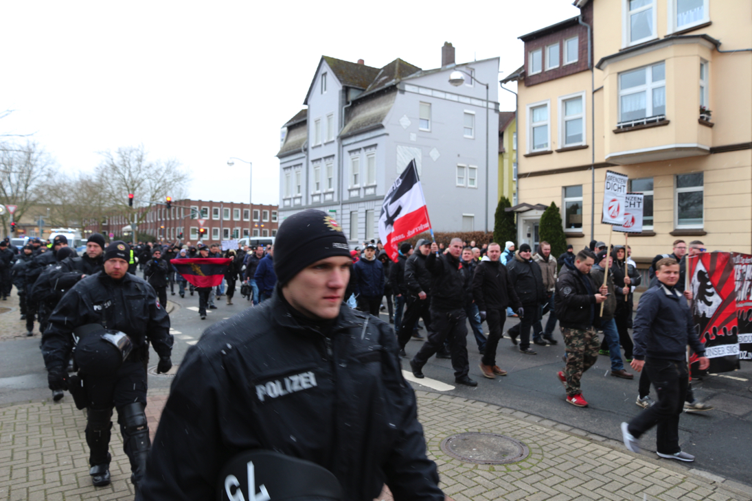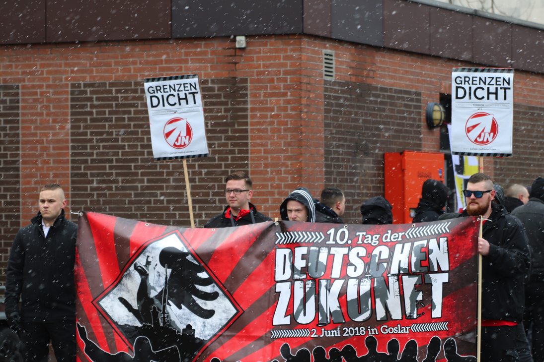 Die angreisten Teilnehmer der extrem rechten Demonstration waren zu einem großen Teil aus anderen Bundesländern, meist aus Ostdeutschland, angereist. Aus Niedersachsen waren nur ein paar Dutzend Teilnehmer zum Peiner Schützenplatz gekommen, vor allem Aktivisten der NPD/JN, der Partei „Die Rechte“ und der „Volksbewegung Niedersachsen“. Deren Sprecher, der Neonazi Jens Wilke, betonte in seiner Rede, dass die „Zeit des Laberns“ vorbei sei und man nun handeln müsse. Er sei stolz auf die „tausendjährige Geschichte unseres Landes“. Neben Wilke traten u.a. der Leipziger Neonazi Alexander Kurth, Jürgen Wirtz von den „Hannoveranern gegen die Islamisierung des Abendlandes“ (HAGIDA) und Lutz Urbanczyk von der AfD-Berlin ans Mikrofon.