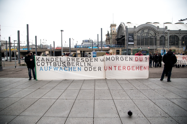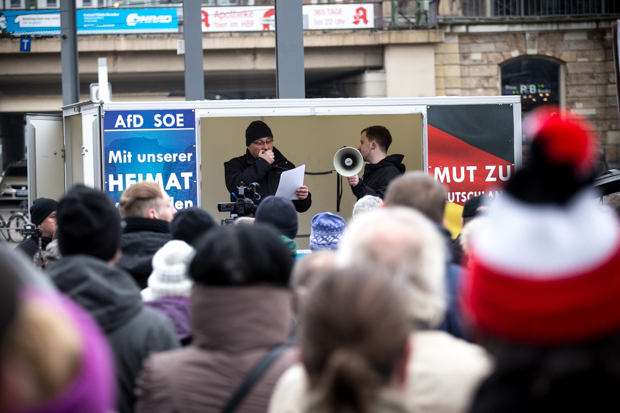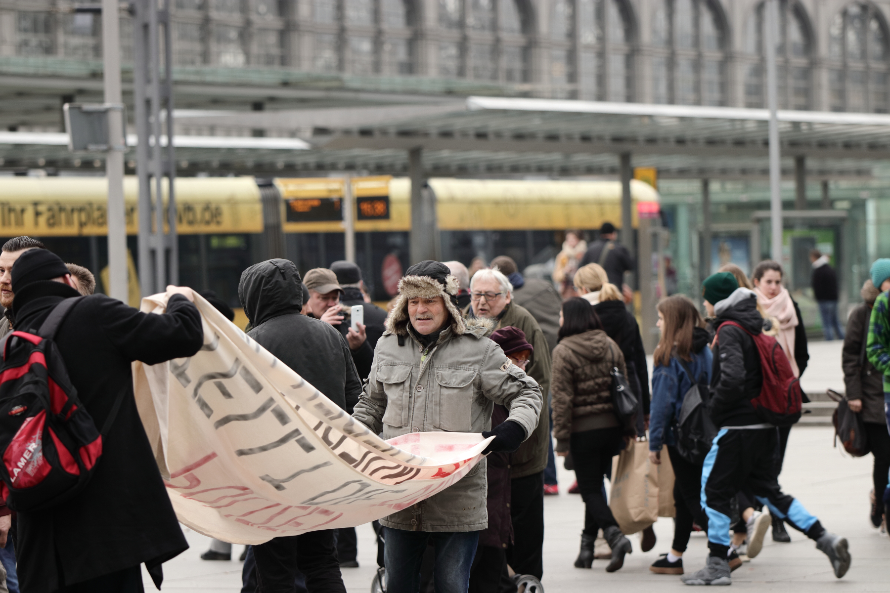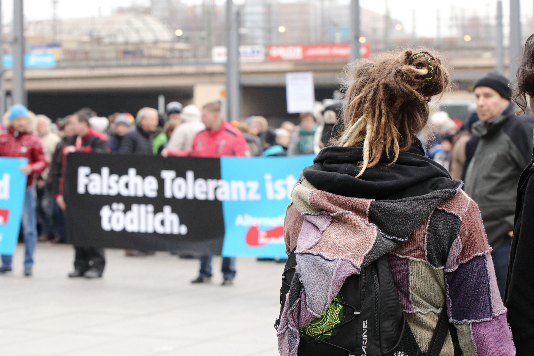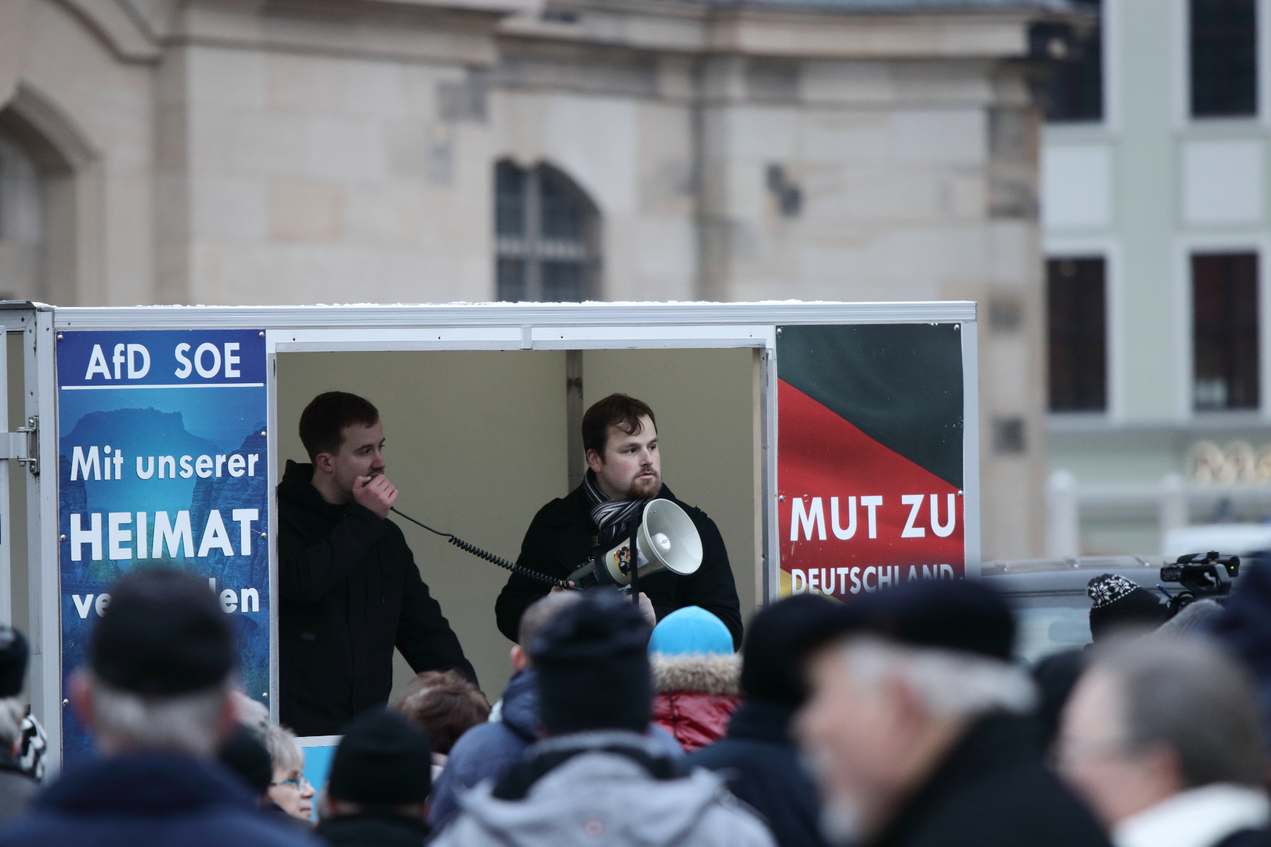 Zur AfD-Veranstaltung am Wiener Platz vorm Dresdner Hauptbahnhof kamen 260 Anhänger, schon zu Beginn hatten sie mit technischen Problemen und Auflagenverstößen zu kämpfen. Ohne Strom für die Lautsprecher musste zum Megafon gegriffen werden, mehrere Transparente entsprachen nicht den Auflagen der Versammlungsbehörde und mussten weggepackt werden. Auf Fotos ist zu sehen, dass sich einige Teilnehmer vermummten, Journalisten wurden mit Stinkefingern bedacht und am Rande belästigt.