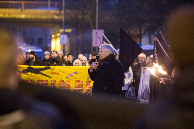 Maier war es schließlich, der dann doch zwischen der AfD-Demonstration und der Bombardierung Dresdens am 13. Februar einen Bezug herstellt. Die englische Sprache habe sich nur durch Kanonen und Bomben als Weltsprache durchgesetzt: „Und hier, Dresden, ist ja ein Fall, wo man das auch erleben musste”, sagte der Dresdner Richter. Maier wittert gar eine Intrige durch Freunde Europas: „Wer von Europa spricht, der hat sich gegen Deutschland verschworen“.