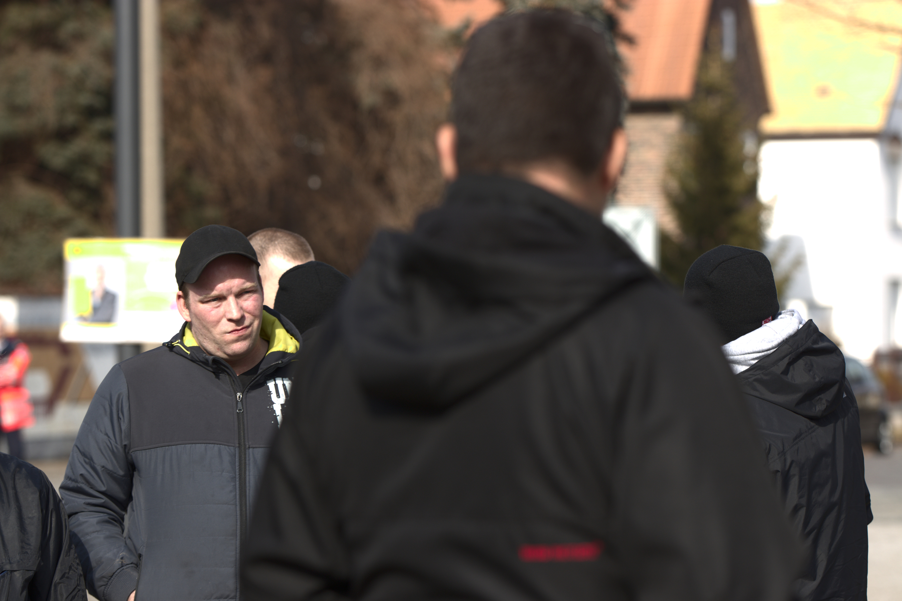 Doch kurz nach der Rede gibt es Handgreiflichkeiten. Fünf Neonazis kommen von einem Parkplatz, laufen auf die Bühne zu: „Achtung, da sind Nazis! Macht doch was!“, ruft eine Passantin. Das Bühnenprogramm läuft weiter, während Polizisten die Gruppe umstellen. Doch auch auf der anderen Bahnhofsseite haben sich 70 vor allem jüngere Leute zu einer antifaschistischen Demonstration getroffen. Die bekommen mit, was beim Toleranzfest passiert, und laufen hin. Nur einer geht anfangs auf die rechtsextreme Gruppe zu, „Verpisst euch!“ brüllt er. Die Neonazis sind aggressiv, einer springt auf den Linken zu, ein Schlag ins Gesicht folgt. Sie ringen miteinander, nur mit Mühe können die Beamten sie trennen. Der rechte Schläger wird kontrolliert, muss zum Alkoholtest. Doch immer mehr Demonstranten kommen vom Bahnhof zum Seminarplatz, die Polizisten sind in der Unterzahl, und – erneut wird provoziert, es gibt ein Gerangel. Die Rechten werden von Beamten zu ihrem Auto gebracht. Anscheinend sind sie zum Provozieren extra angereist. Unter Geleitschutz ziehen sie ab.