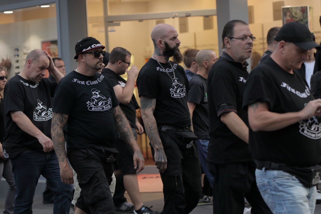 Aus dem gesamten Ruhrgebiet reisten Demonstranten an, aus Essen etwa Mitglieder einer einheitlich gekleideten Gruppe namens First Class Crew – Steeler Jungs. Den Hooligans aus dem Essener Stadtteil Steele wird der Angriff auf eine alternative Kneipe im April 2018 zugeschrieben. Die mindestens 80 Personen starke Organisation tritt seit einiger Zeit als Bürgerwehr in Erscheinung und wird von Polizeibehörden beobachtet.