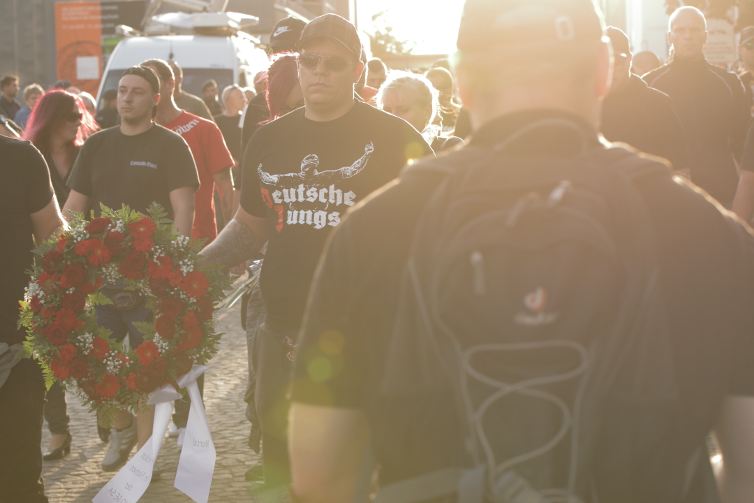 Als sich der Aufzug in Bewegung setzte, provozierten einzelne Neonazis am Rande. Die Polizei war mit einer Hundertschaft im Einsatz, musste aber nicht eingreifen.
