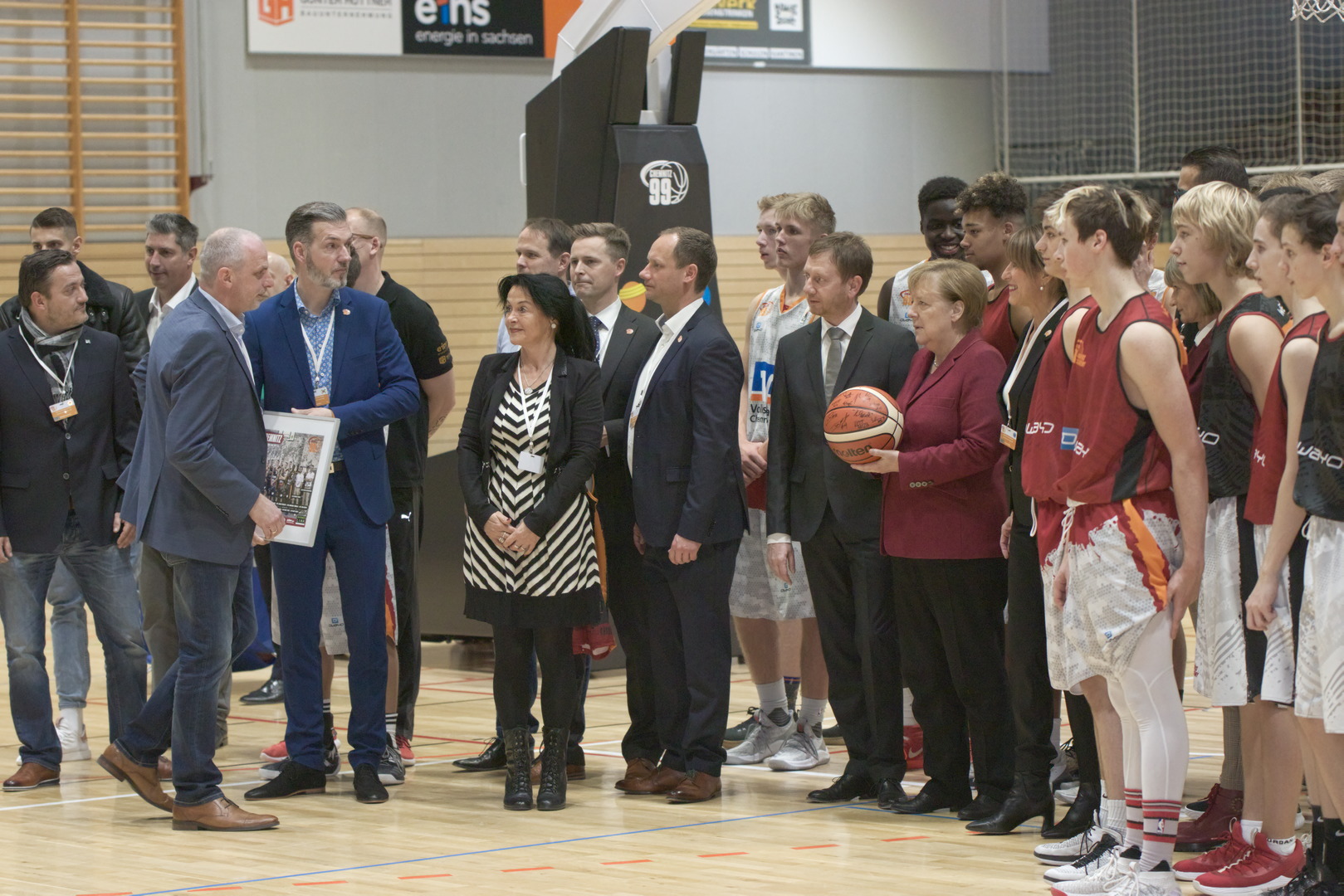 Dieser Freitag begann in Chemnitz mit strengen Sicherheitsvorkehrungen. Laptops und Kameras wurden auf Sprengstoff überprüft, und alle, die in die Hartmann-Sporthalle kamen, passierten Leibesvisitationen und Metalldetektoren. Die Kanzlerin, Sachsens Ministerpräsident Michael Kretschmer und Oberbürgermeisterin Barbara Ludwig hatten sich bei der Jugendmannschaft angekündigt: ein sogenannter Bürgerdialog am Rande des Trainings der Jugendmannschaften der Chemnitz Niners, einem Basketballteam der zweiten Bundesliga. Polizei und Stadtobere sind nervös, am Tag zuvor gab es eine Bombendrohung gegen das Konzert der Punkband Feine Sahne Fischfilet in einem Chemnitzer Kulturzentrum, zuletzt machten organisierte Rechtsextreme, von denen mindestens drei aus der bereits 2007 verbotenen Kameradschaft Sturm 34 stammen, Schlagzeilen. Die rechtsextreme Bewegung Pro Chemnitz und Verschwörungstheoretiker hatten zu Demonstrationen aufgerufen, ein Pro-Aktivist hatte beim Kanzlerinnengespräch Angela Merkel gar aufgefordert, mit zur Demo zu kommen.