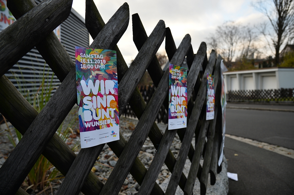 Die Kundgebung der Rechtsextremen endete an einem Weltkriegsdenkmal. Die Demonstrierenden legten Kränze nieder, sangen die erste Strophe der Nationalhymne, spuckten dem Reporter von ZEIT ONLINE vor die Füße. Bis halb zehn Uhr am Abend harrten sie im Licht von Scheinwerfern aus, die die Polizei aufgestellt hatte. Am Tag darauf, dem Volkstrauertag, traf sich die Kirchgemeinde zum öffentlichen Gedenken. Das Denkmal wollten die Bürger den Neonazis nicht überlassen.