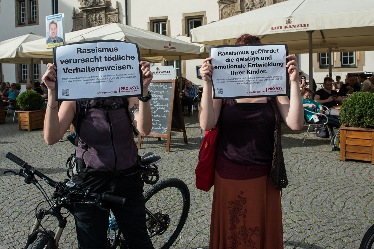 Am 22.05.2014 veranstaltete die NPD eine Kundgebung in Kaiserslautern. Die Rechtsextremen skandierten ihre Parolen nur wenige hundert Meter von einem Flüchtlingsheim entfernt und warben um Stimmen für die bevorstehende Kommunalwahl. Das breite Bündnis „Kaiserslautern gegen Rechts“ hatte dazu aufgerufen, „die Wahlpropaganda und Hetze der NPD zu übertönen“.