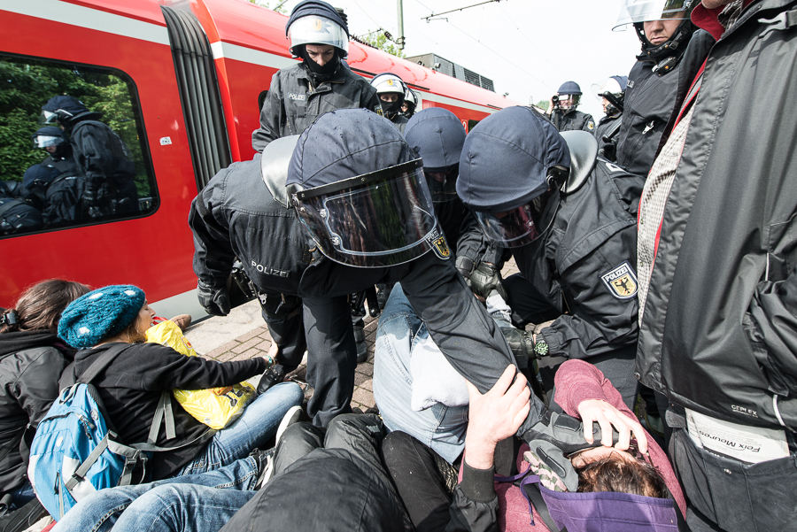 Polizeibeamte bei der Räumung einer Sitzblockade