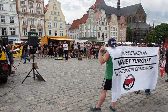 In Rostock haben am Montag etwa 200 Menschen an den 2004 erschossenen Mehmet Turgut erinnert. Für den Mord im Stadtteil Toitenwinkel wird der rechtsextremistische „Nationalsozialistische Untergrund“ verantwortlich gemacht. Seit Monaten kritisieren mehrere Initiativen, wie der Migrantenrat Rostock, dass weder ein Gedenkstein noch eine Straße den Namen des Opfers trägt. Das soll sich in diesem Jahr ändern. Weiter„Das schwierige Gedenken an NSU-Opfer Mehmet Turgut“