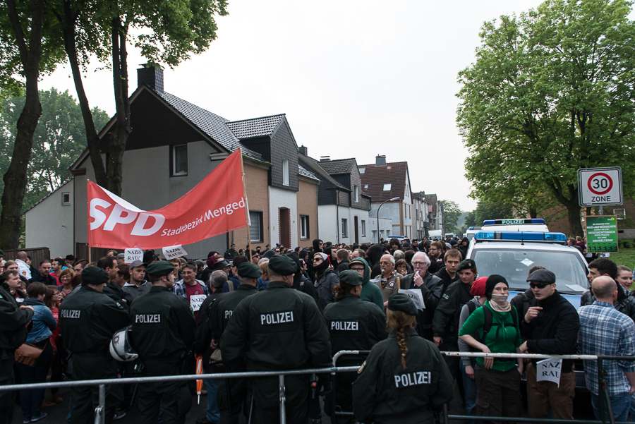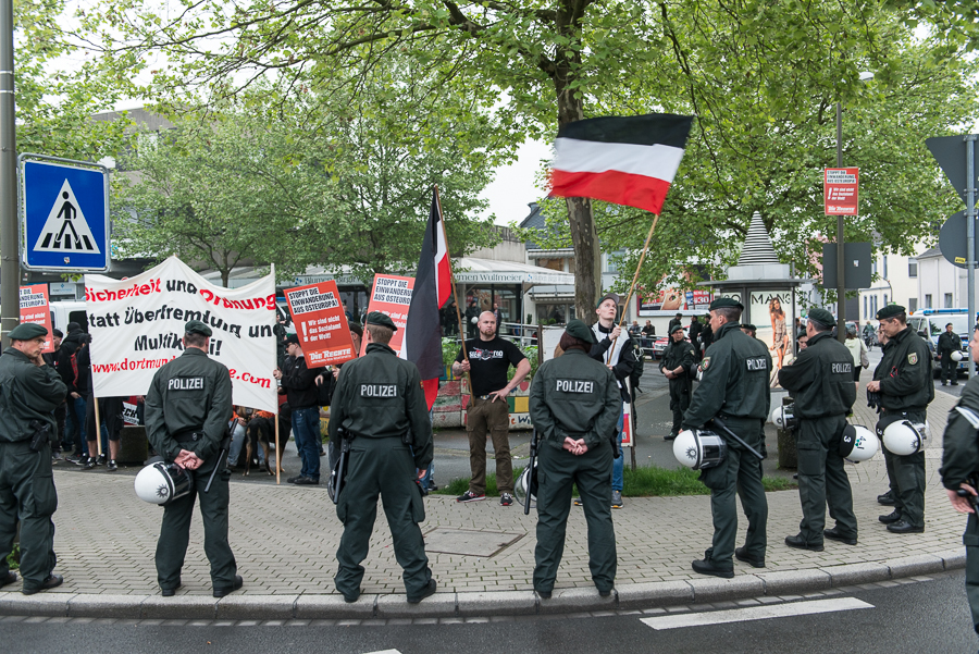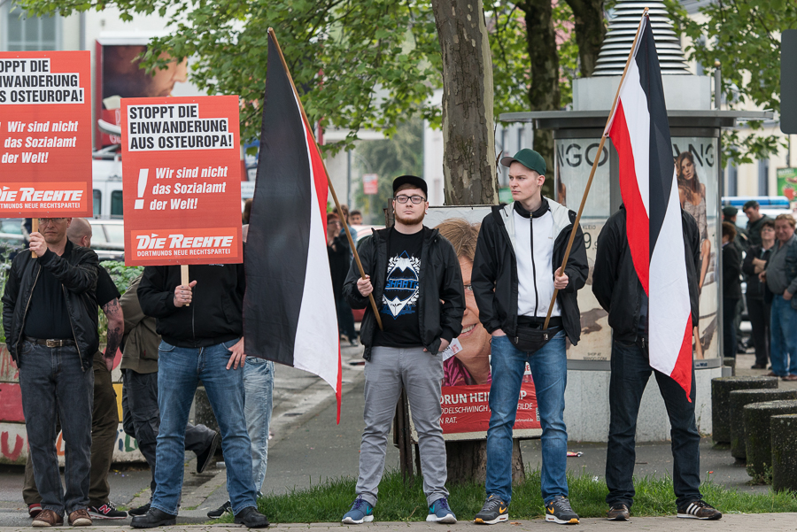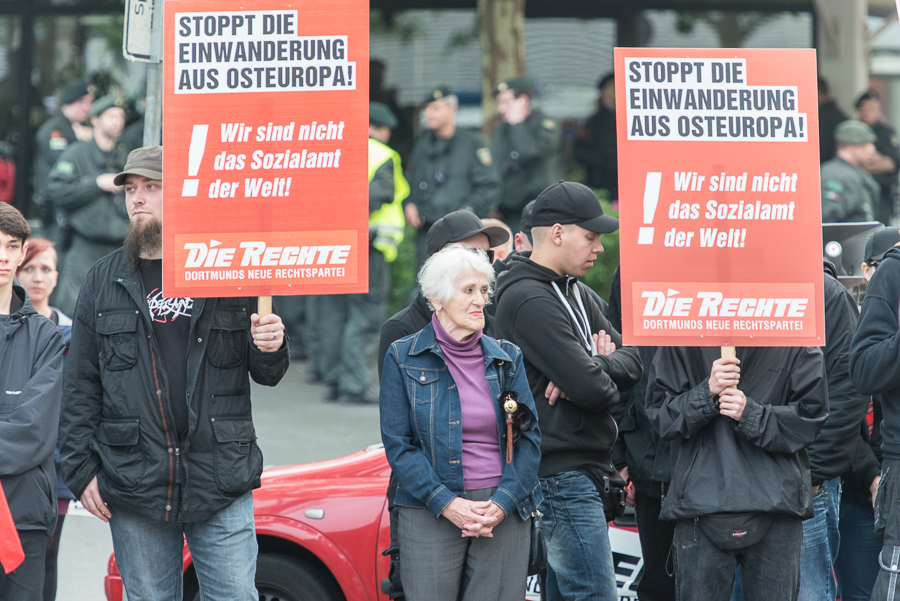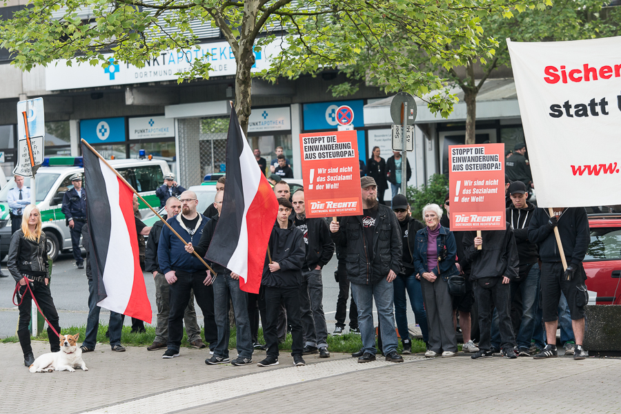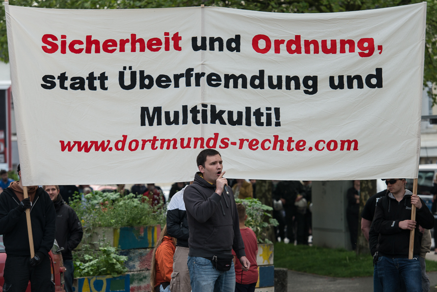 Am 30.04.2014 fand eine Kundgebung der rechtsextremen Partei „Die Rechte“ in Dortmund-Westerfilde statt. Unter den Rednern war unter anderem Nazi-Kader Dennis Giemsch, Dortmunder Stadtratskandidat für die bevorstehenden Kommunalwahlen. Auch Siegfried Borchardt, ehemaliger Funktionär der 1995 verbotenen Freiheitlichen Deutschen Arbeiterpartei nahm an der Kundgebung teil. Auch er kandidiert in Dortmund für den Stadtrat. „Während der Kundgebung der Rechtsextremen wurden aus der 47-köpfigen Teilnehmergruppe ausländerfeindliche Parolen skandiert“, hieß es später von der Polizei. Die Beamten stellten die Personalien der Teilnehmer fest und leitete Strafverfahren wegen Volksverhetzung ein. Begleitet wurde die Kundgebung vom lautstarken Protest der Gegendemonstranten.
