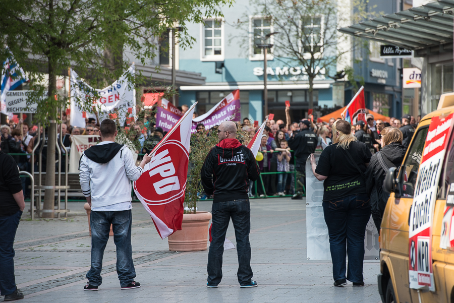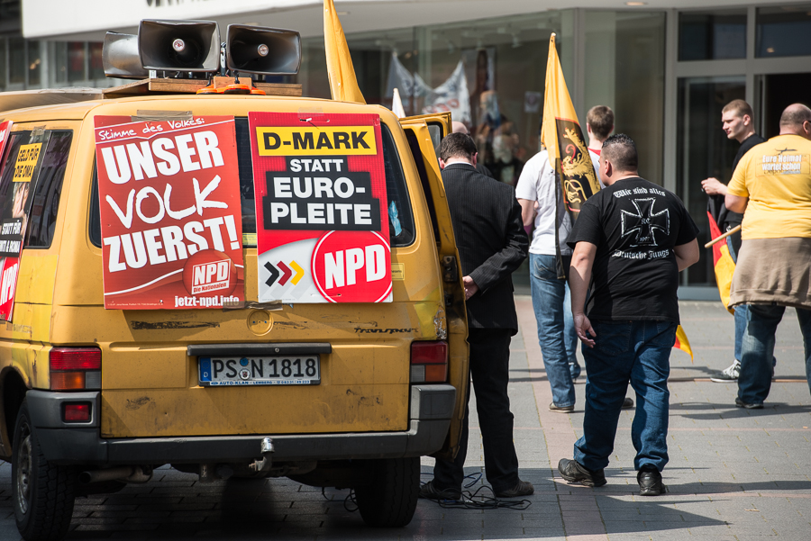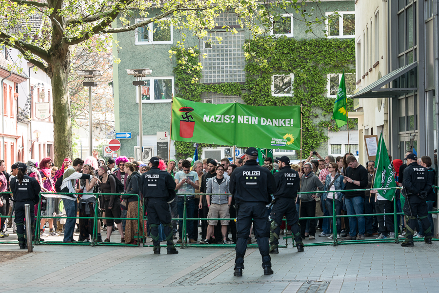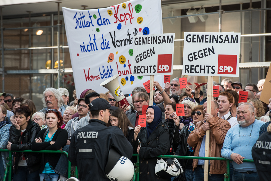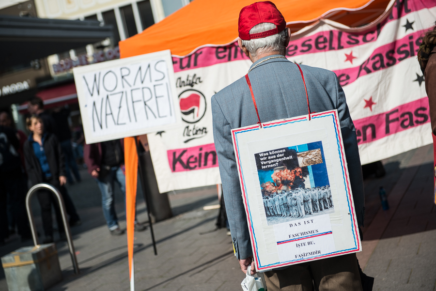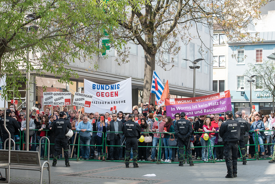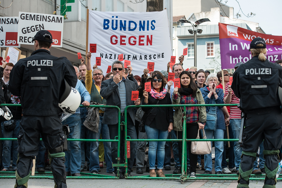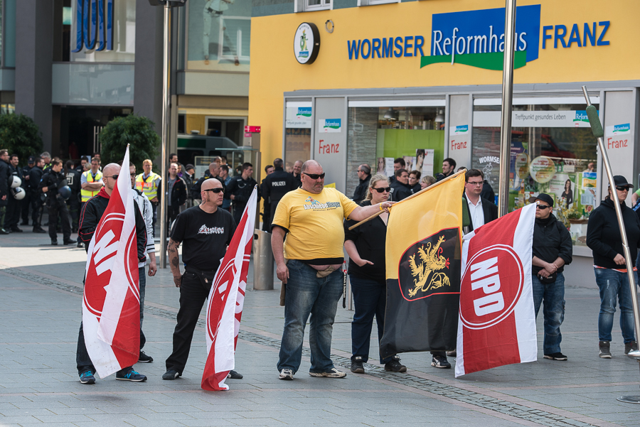 Am 12. April 2014 fand in Worms eine NPD-Kundgebung statt. Unser Autor Christian Martischius war für uns vor Ort. Mehrere Hundert Menschen aus einem breiten Blockadebündnis stellten sich den rund 25 Neonazis in den Weg. Durch den lautstarken Protest der Gegendemonstranten waren die Ansprachen des NPD-Kreisvorsitzenden Jan Jaeschke und seiner Mitredner kaum verständlich.