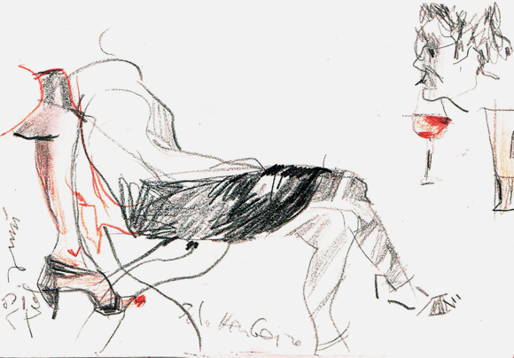 Skizzieren ist für mich seit meinem Studium (Architektur) eine lebensbegleitende Tätigkeit. Nun bin ich rentneralt und auf dem Fahrrad unterwegs in der Landschaft. Eine Miniausstattung an Zeichenzeug habe ich immer dabei. Besonders schön sind die Montage, wenn alle wieder an die Arbeit gegangen sind und in der Welt Stille eingekehrt ist. Dann mache ich gelegentlich in einem Café halt, wo lauter Leute wie ich sitzen – die im arbeitsfreien Alter.