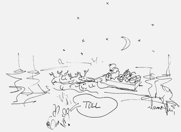 Die Kritzelei der Woche 2. Januar 2014 um 18:00 Uhr Diese Kritzelei entstand vor Jahren in der Vorweihnachtszeit während einer zwar langen, aber nicht unbedingt prickelnden Arbeitssitzung. Ich habe sie dann als Weihnachtskarte übernommen. Helmut Gudehus, Coburg