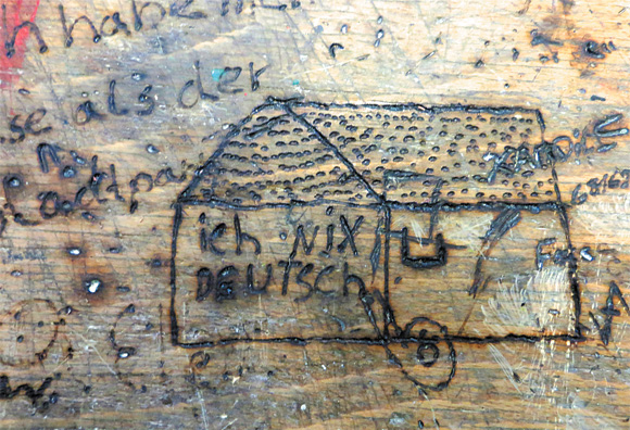 Bei dem Besuch einer Jugendstrafanstalt besichtigten wir – eine Gruppe BewährungshelferInnen – die Werkräume der Jugendlichen. Die hölzernen Arbeitstische waren übersät mit Farbspuren, Kritzeleien und eingeritzten wie eingebrannten Bildern. Mir fiel dabei besonders die kindliche Darstellung eines Hauses auf mit den eingebrannten Wörtern »ich nix deutsch«. Welche Botschaft sollte hier dem schäbigen Holz der Werkbänke anvertraut werden?