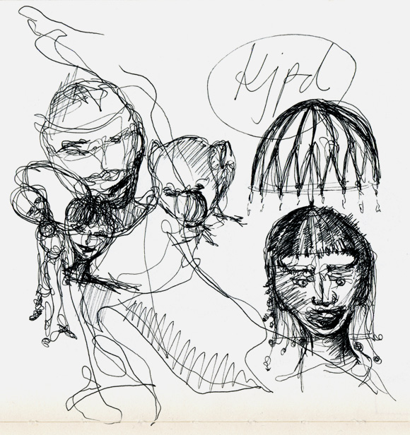 Nach sechs Stunden Weiterbildung zum Thema »kunsttherapeutische Arbeit mit Kindern« brauchte auch ich einen Fluchtort. Anstatt weiter dem Dozenten mein Ohr zu leihen, ließ ich den Stift Entspannungsrunden machen und zeichnete drauflos.