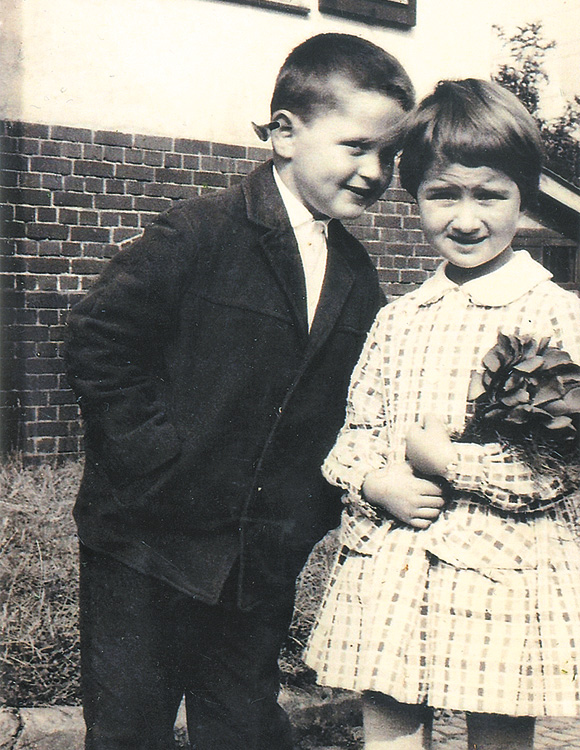 Vor 51 Jahren standen mein Cousin Lutz und ich in festlicher Kleidung vor dem damaligen Kindergarten in Jößnitz bei Plauen. Den Blumenstrauß in meinem Arm hatte meine Tante zur Namensgebung ihres Sohnes Thorsten binden lassen. Mein Vater und ich waren zur Familienfeier in die DDR gefahren. Meine Mutter konnte leider nicht dabei sein, weil sie zehn Jahre zuvor aus der DDR geflohen war. Das aktuelle Foto entstand, als mein Mann und ich meine heute 82 Jahre alte Mutter zum Klassentreffen nach Plauen chauffierten und wir uns mit unseren Cousins trafen. Lutz war gleich für die »Zeitsprung«-Idee zu haben und besorgte sogar einen Blumenstrauß. Wie unterschiedlich wir die Jahre zwischen den beiden Bildern doch erlebt haben!